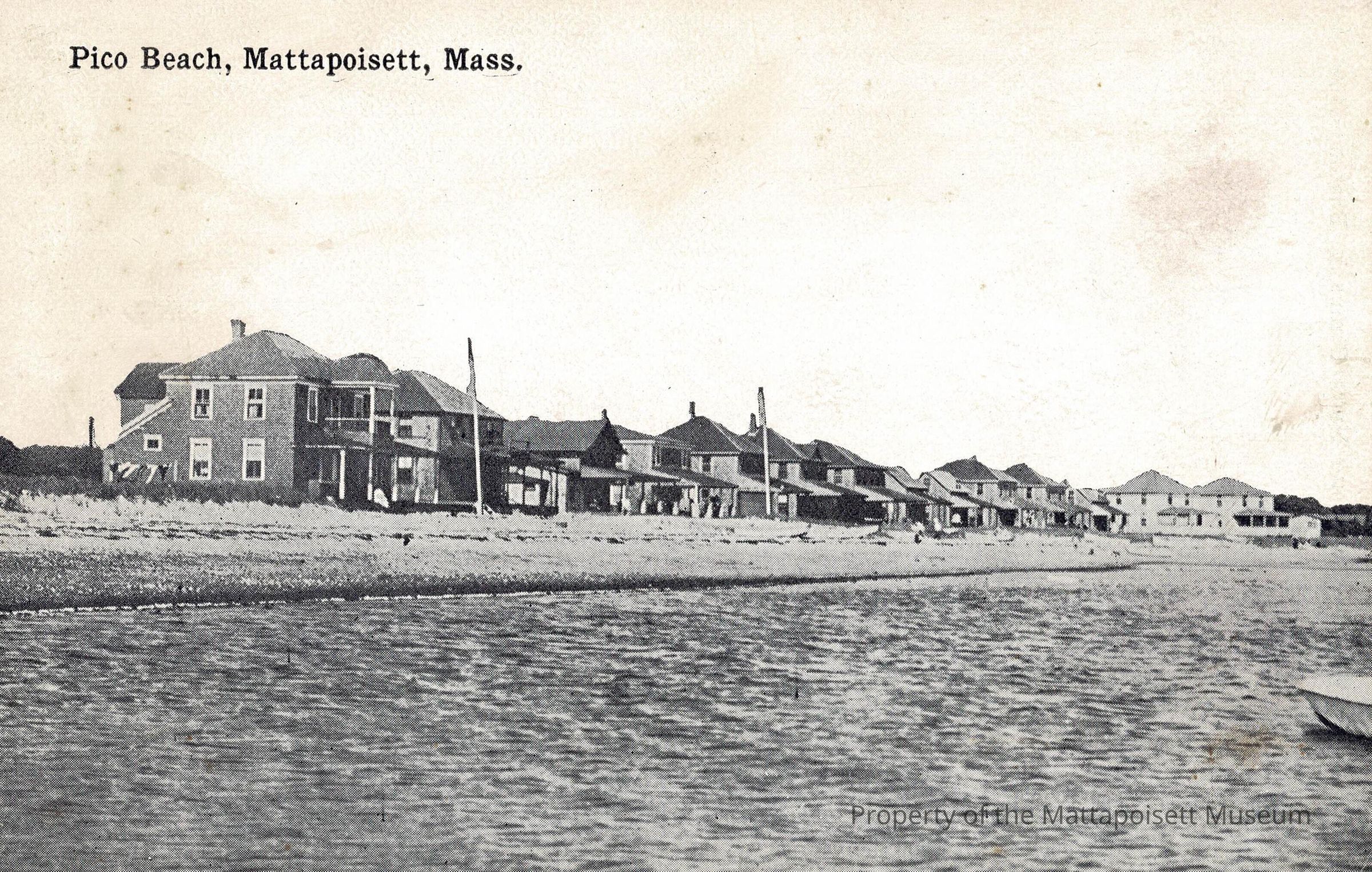Black and white postcard showing Pico Beach, Mattapoisett, Mass. Pre-addressed Alice C. Ordway, North Street, Mattapoisett, Massachusetts.Collection
