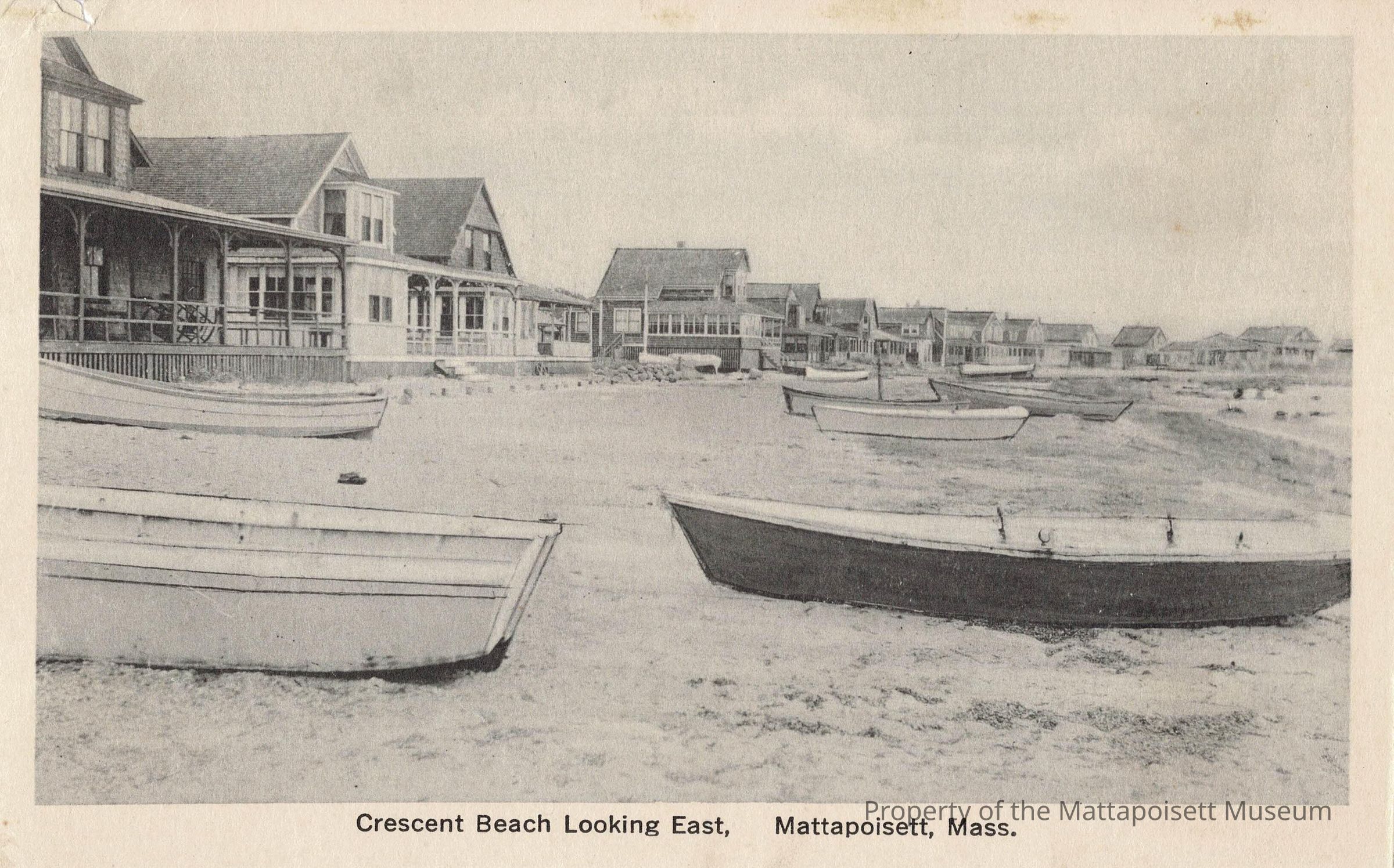 Black and white postcard showing Crescent Beach Looking East, Mattapoisett, Mass.Collection