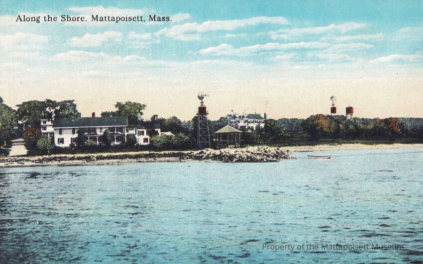 Hand-colored postcard showing Along the Shore, Mattapoisett, Mass. Pre-address of Alice C. Ordway, North Street, Mattapoisett, Massachusetts.Collection