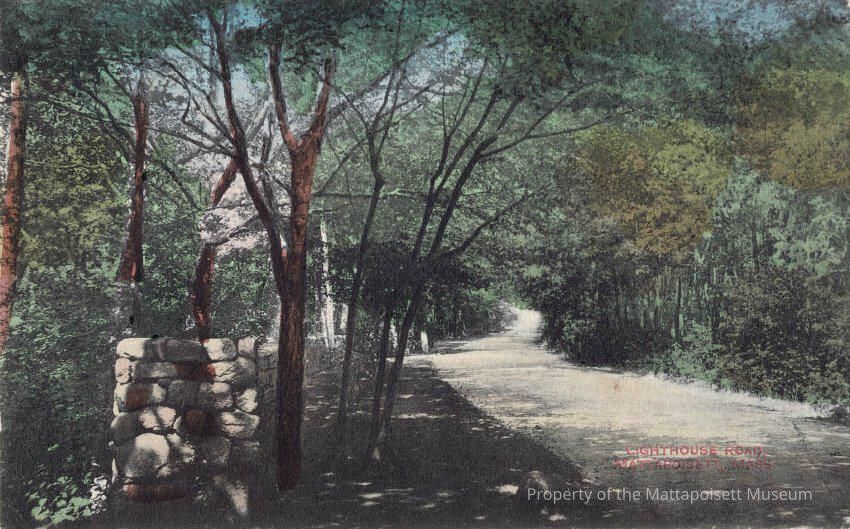 Hand-colored postcard showing Lighthouse Road, Mattapoisett, Mass.Collection