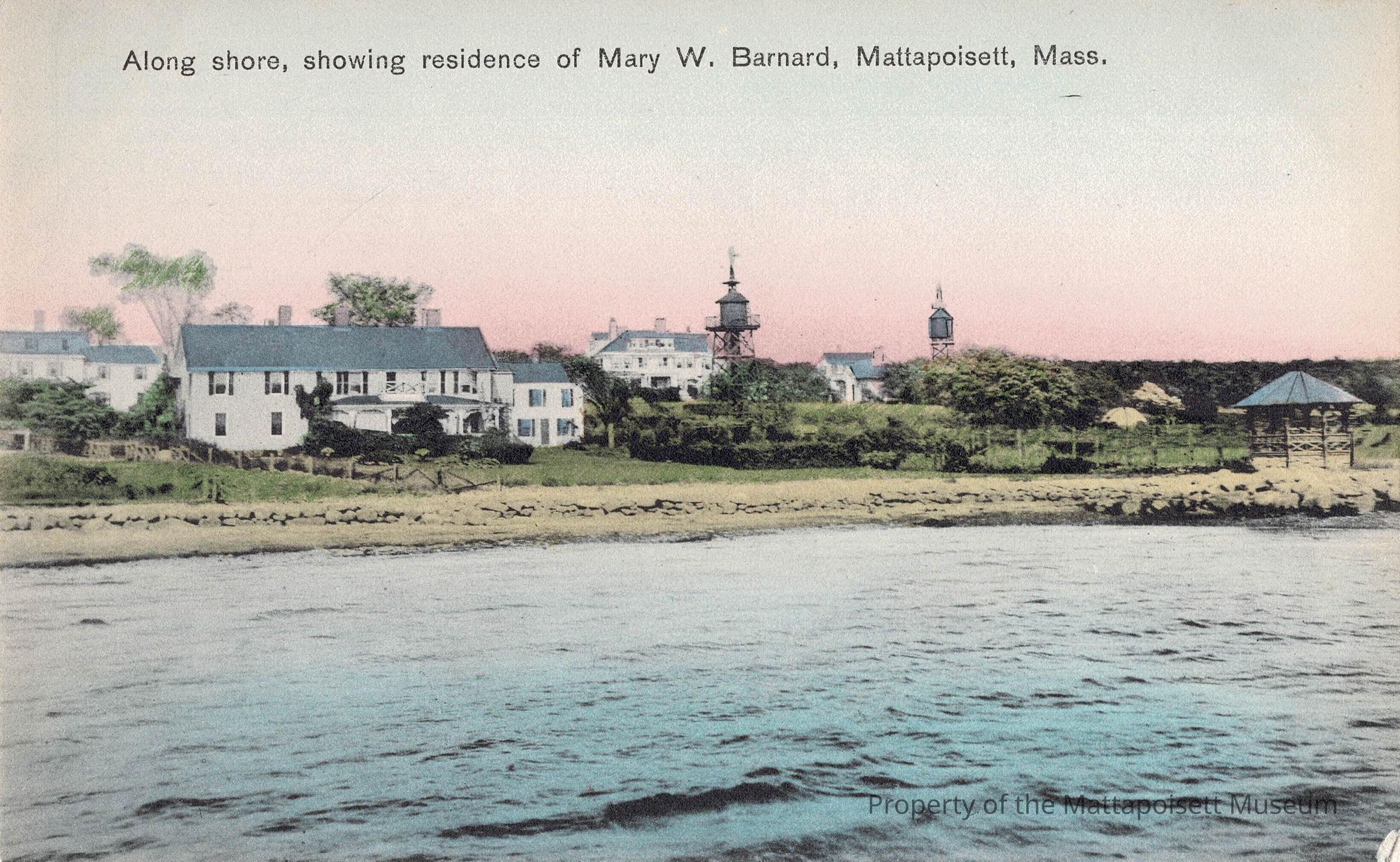 Hand-colored postcard. "Along shore, showing residence of Mary W. Barnard, Mattapoisett, Mass."Collection