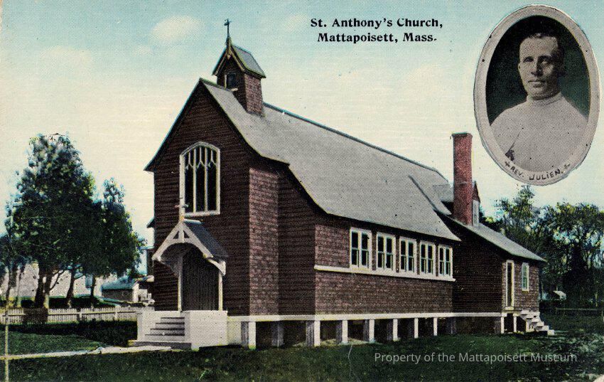 Hand-colored postcard showing St. Anthony's Church, Mattapoisett, Mass.Collection