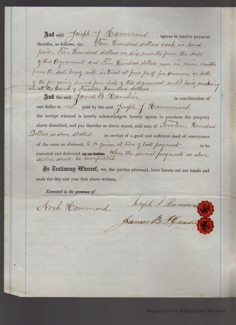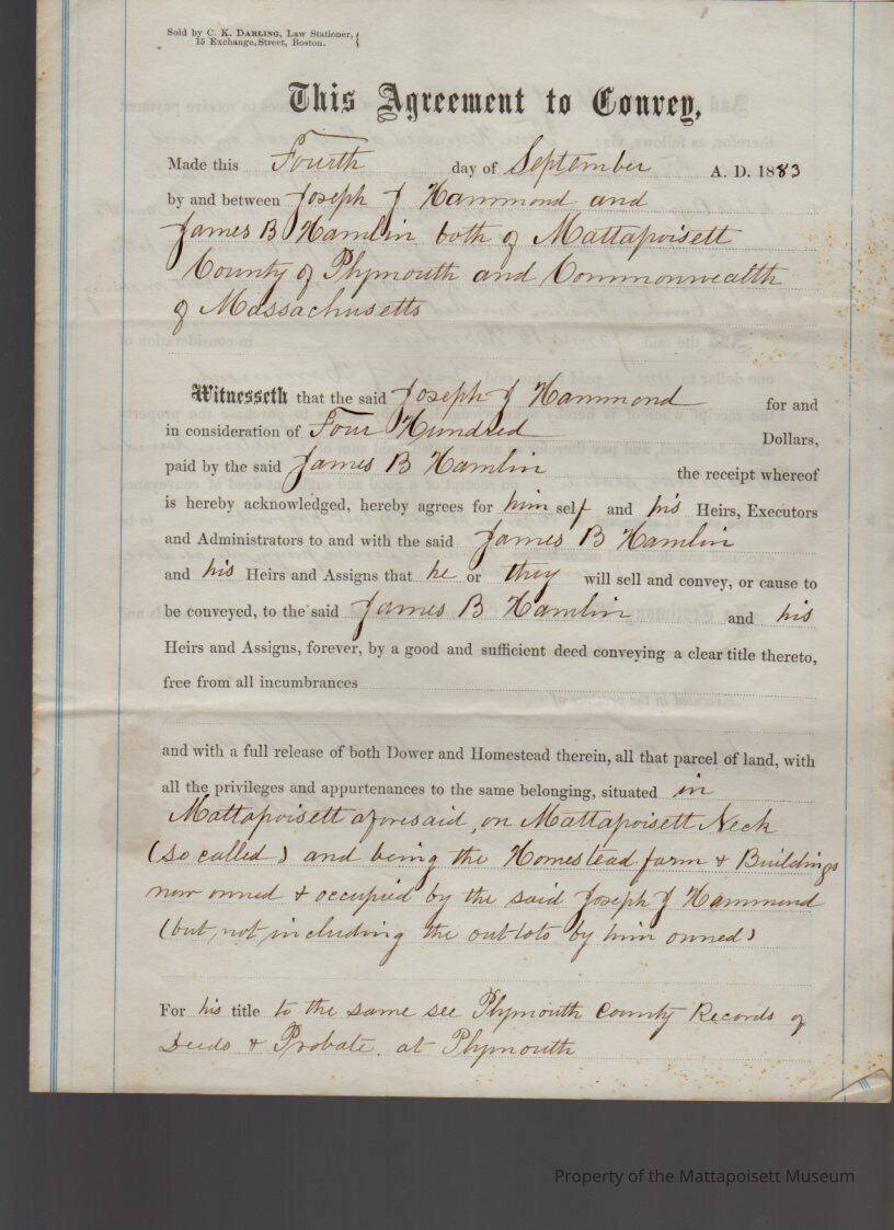 Joseph J. Hammond to James B. Hamlin, land and buildings at Mattapoisett Neck.Collection