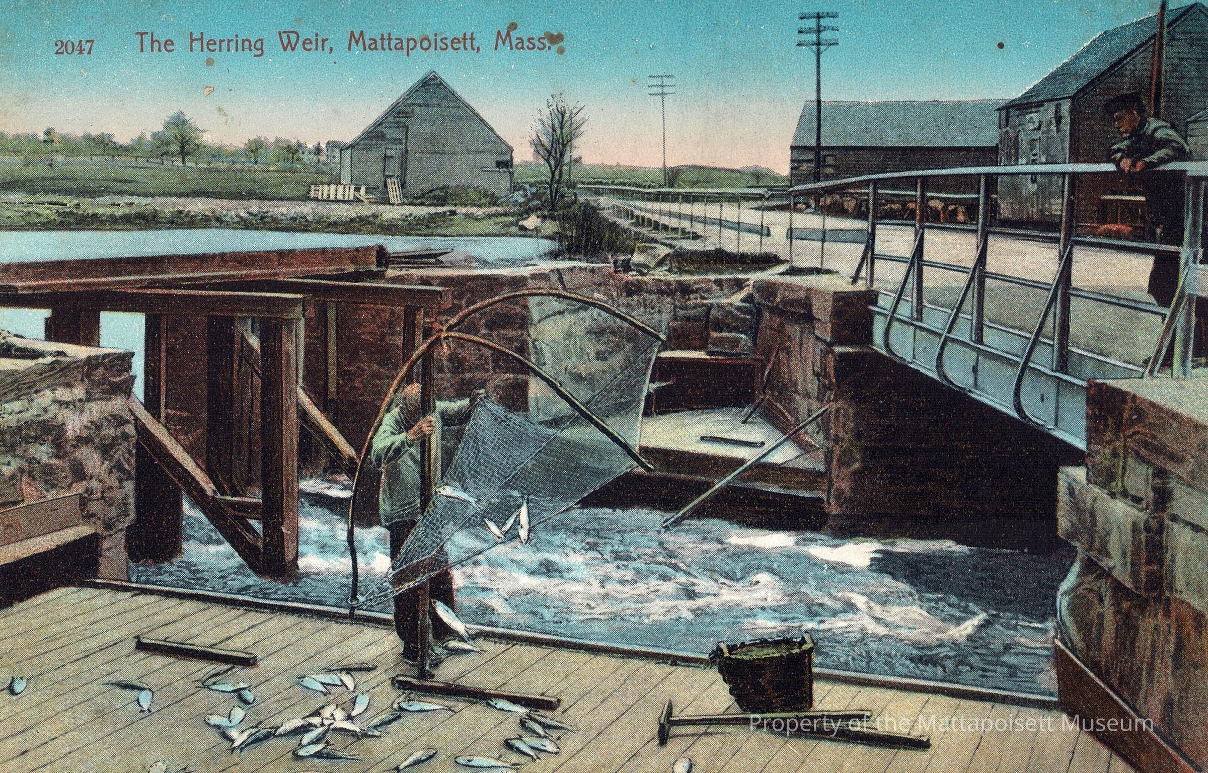 Hand-colored postcard showing The Herring Weir, Mattapoisett, Mass.Collection