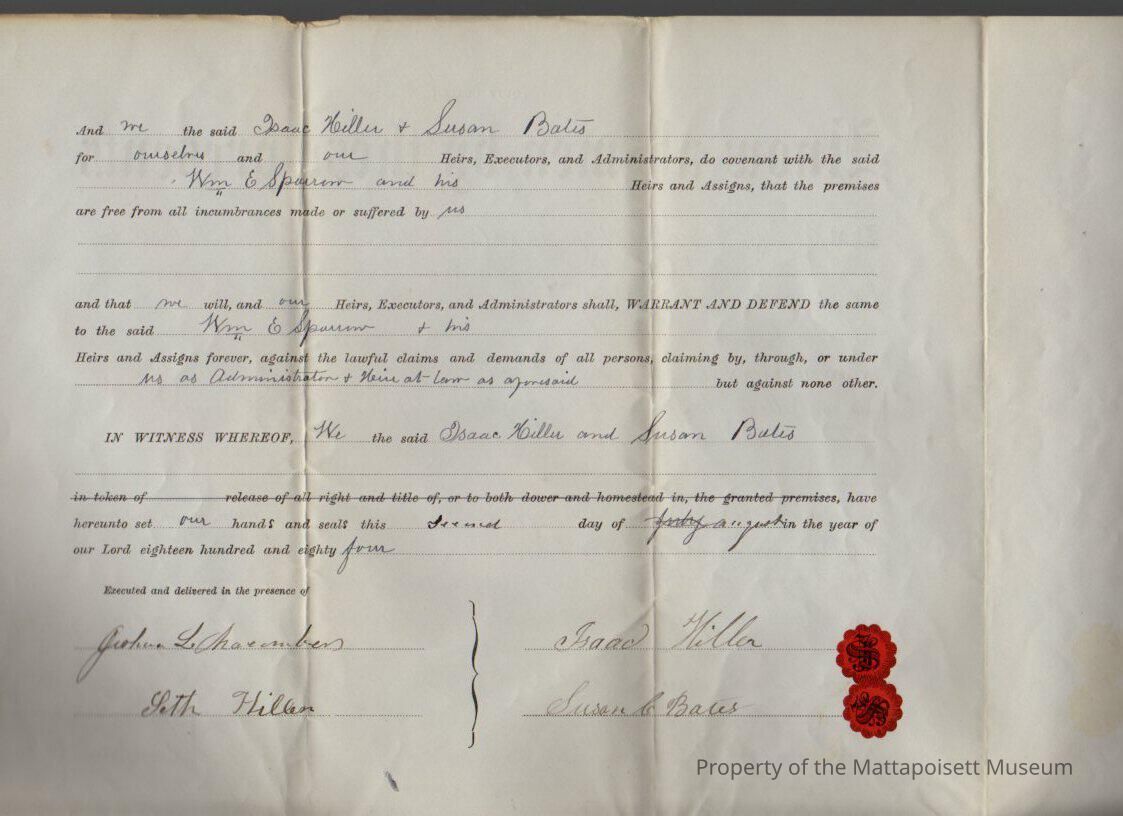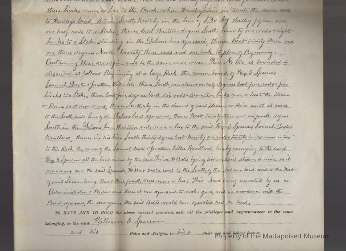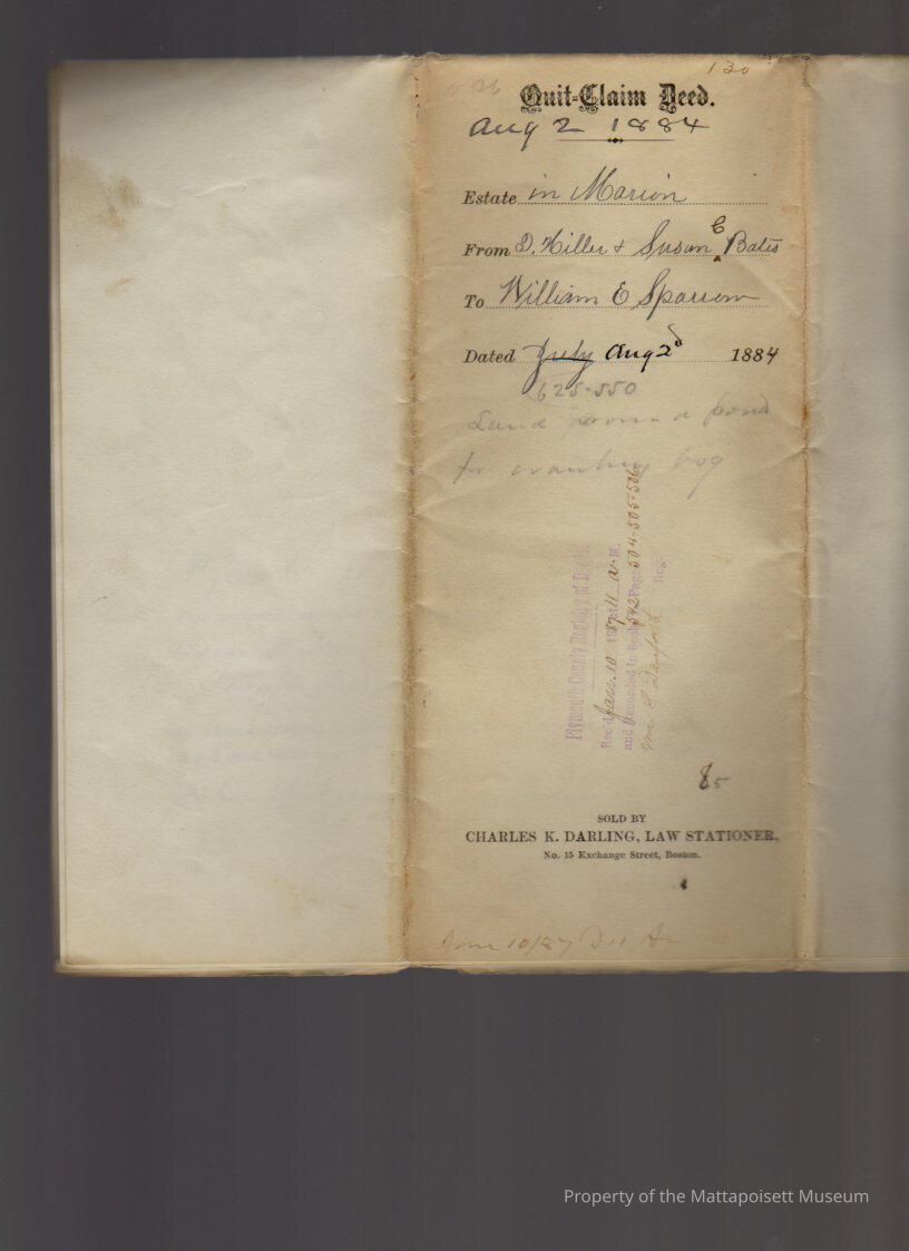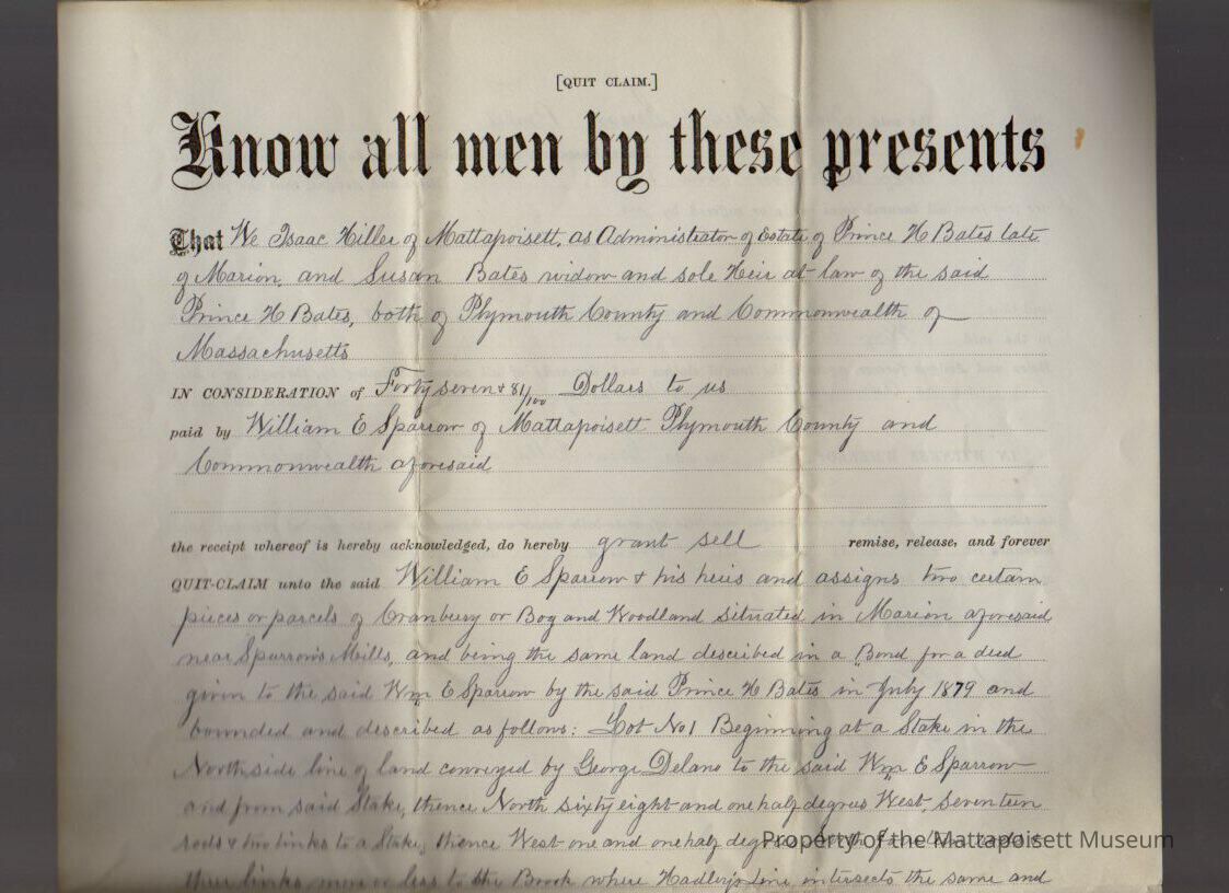 Isaac Hiller, administrator of the estate of Prince H. Bates of Marion & Susan Bates, his widow to William E. Sparrow, cranberry/bog or woodland for $57.81.Collection