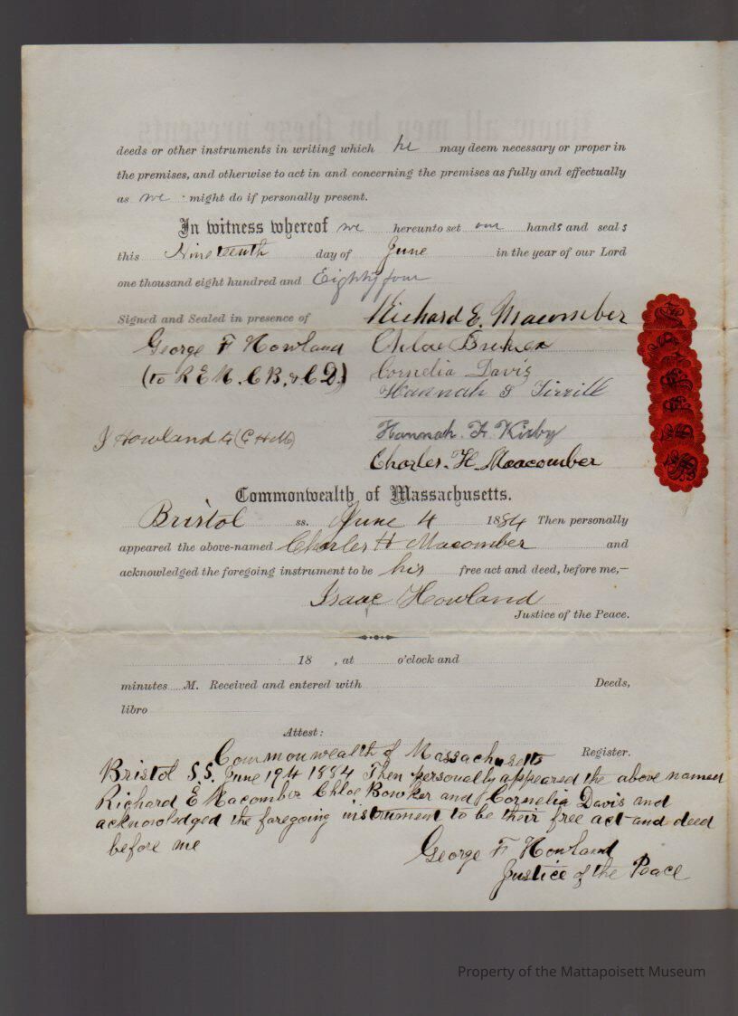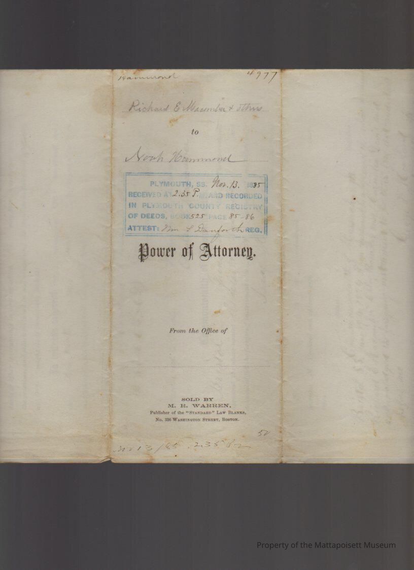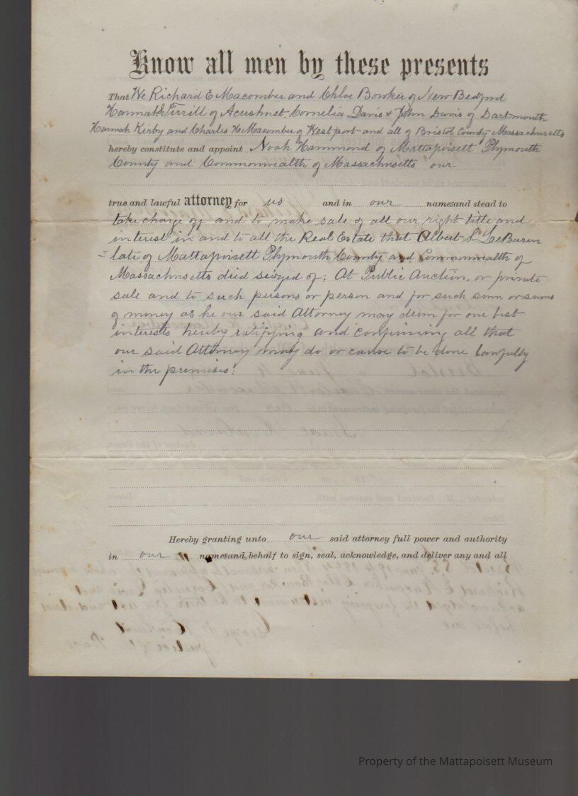 Richard E. Macomber of New Bedford, et al., Power of Attorney to Noah Hammond, to sell real estate of Albert S. LeBaron.Collection