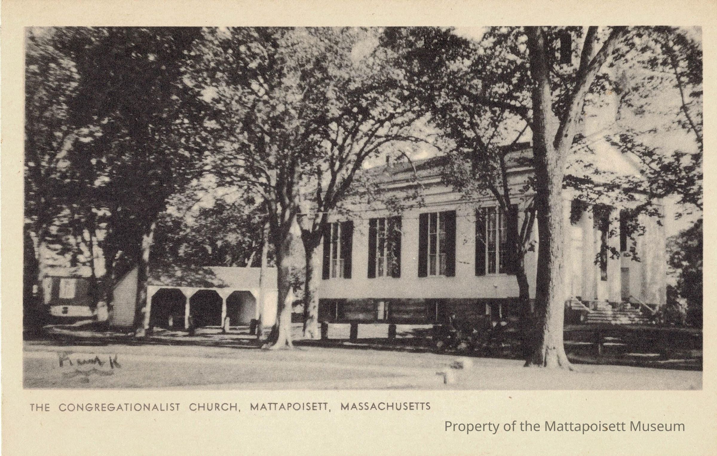 Black and white postcard showing The Congregationalist Church, Mattapoisett, Massachusetts.Collection