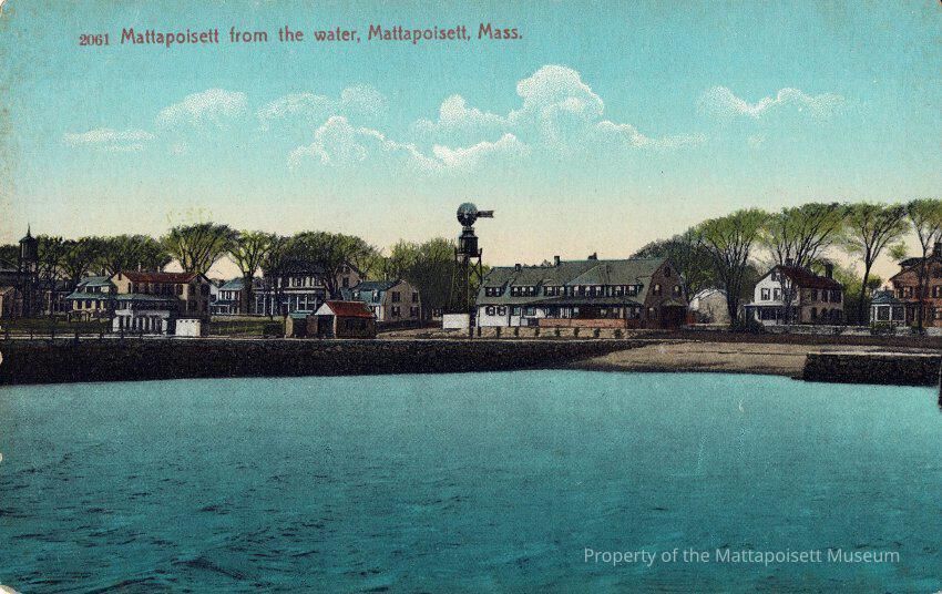 Hand-colored postcard showing Mattapoisett from the water, Mattapoisett, Mass.Collection