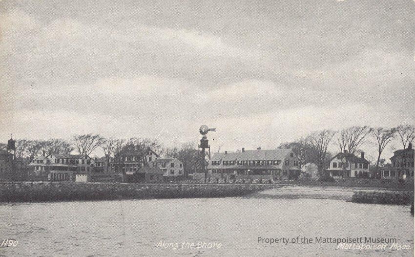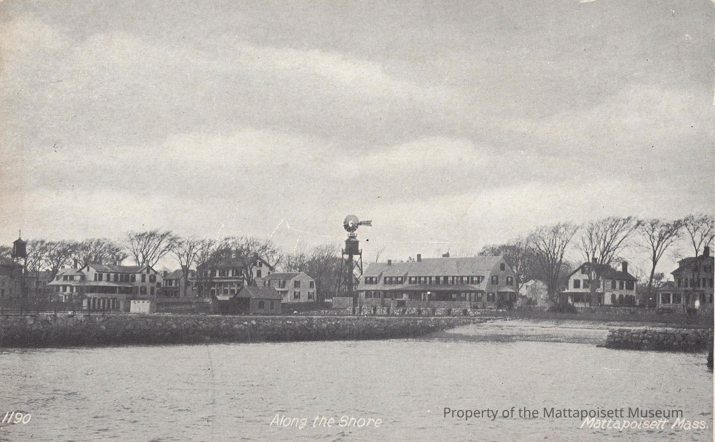 Black and white postcard showing Along the Shore, Mattapoisett, Mass.Collection