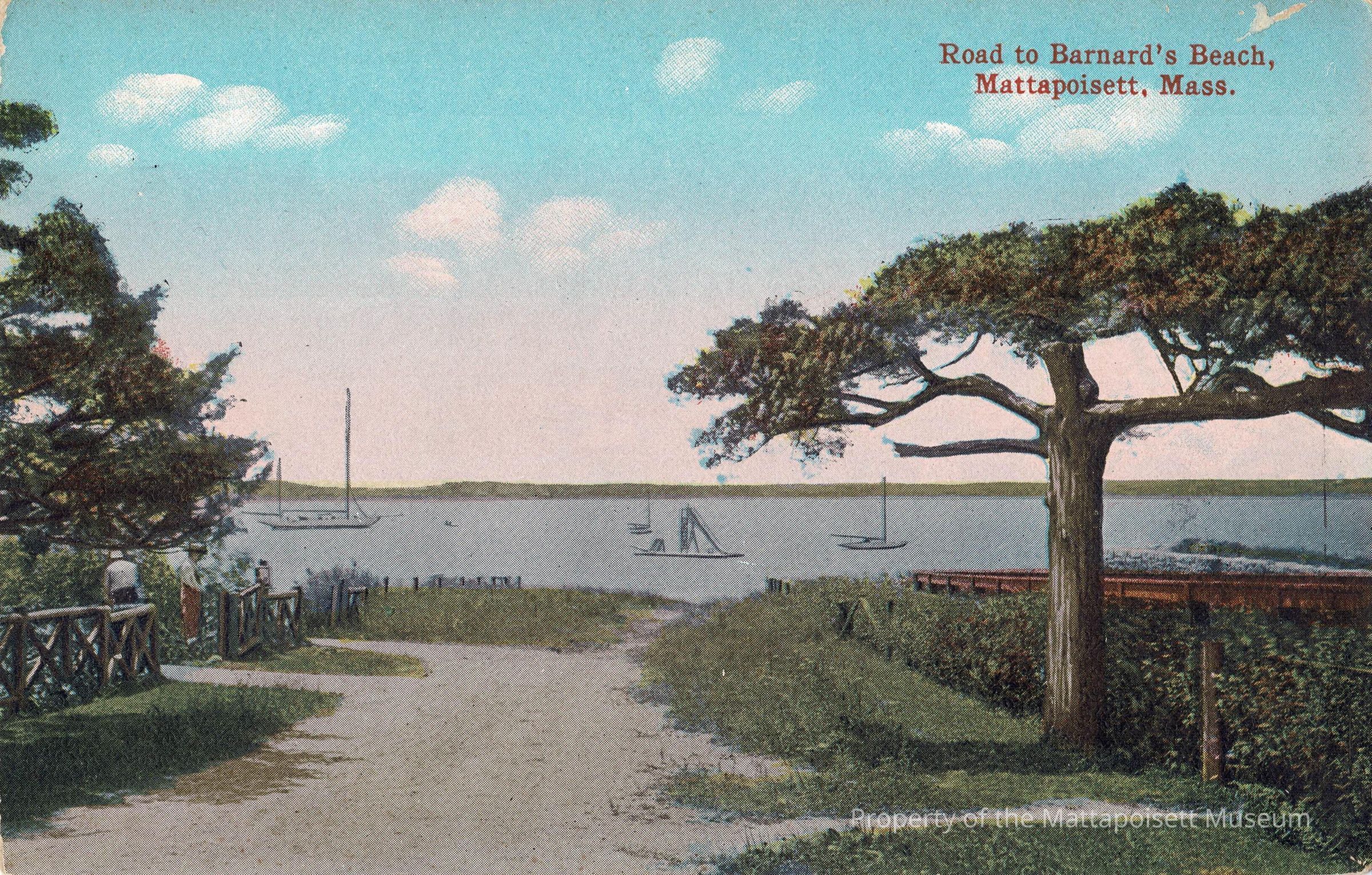 Hand-painted postcard showing Road to Barnard's Beach, Mattapoisett, Mass.Collection