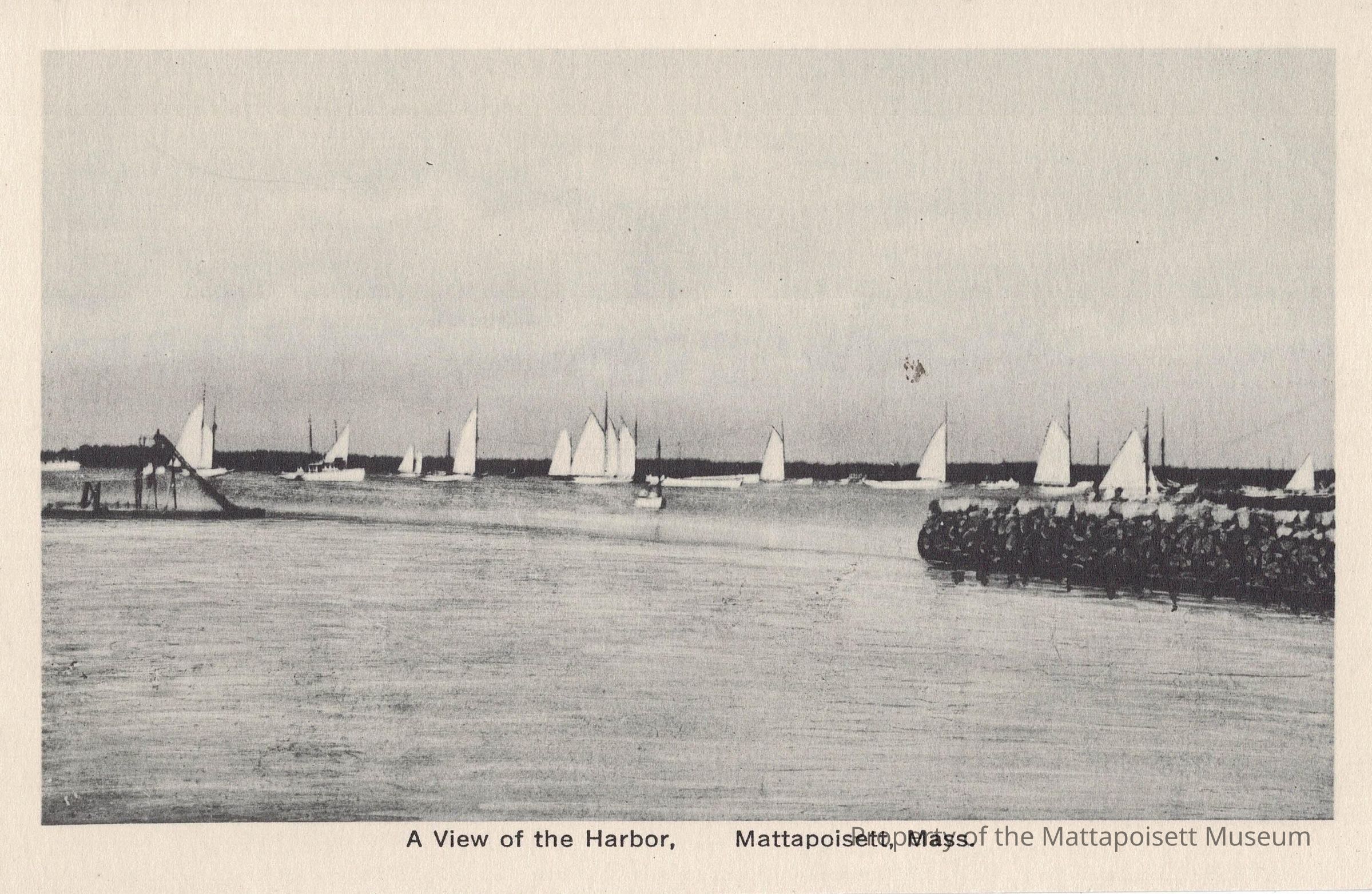 Black and white postcard showing A View of the Harbor, Mattapoisett, Mass.Collection