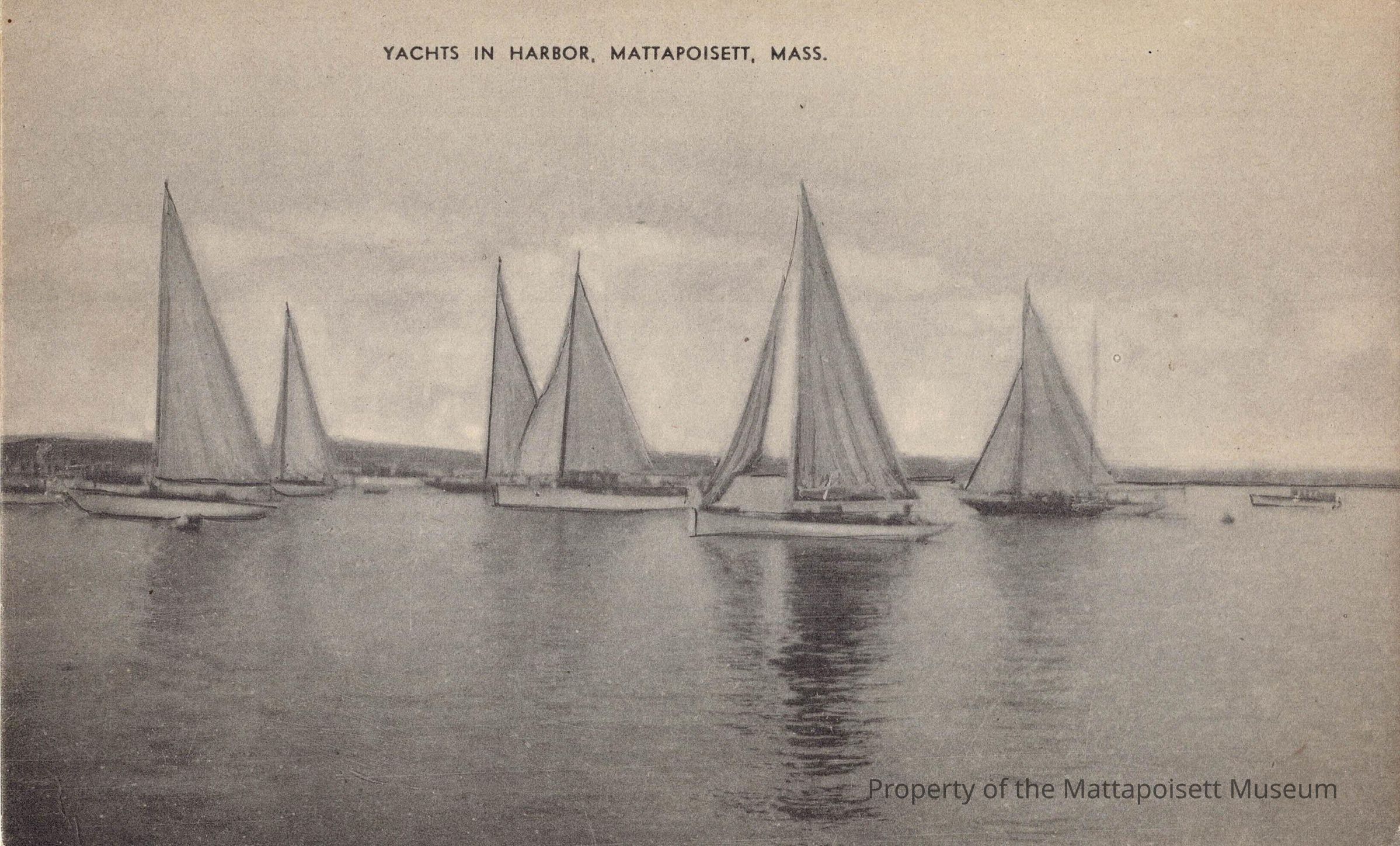 Black and white postcard showing Yachts in Harbor, Mattapoisett, Mass.Collection