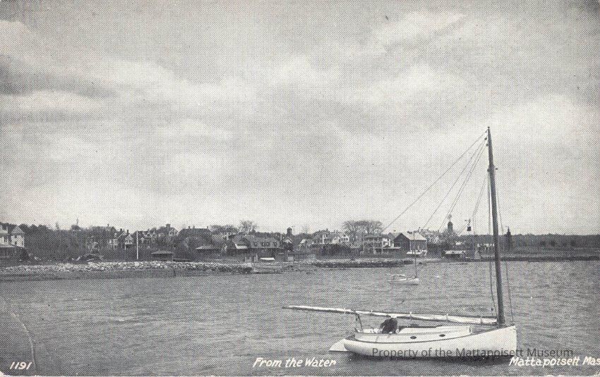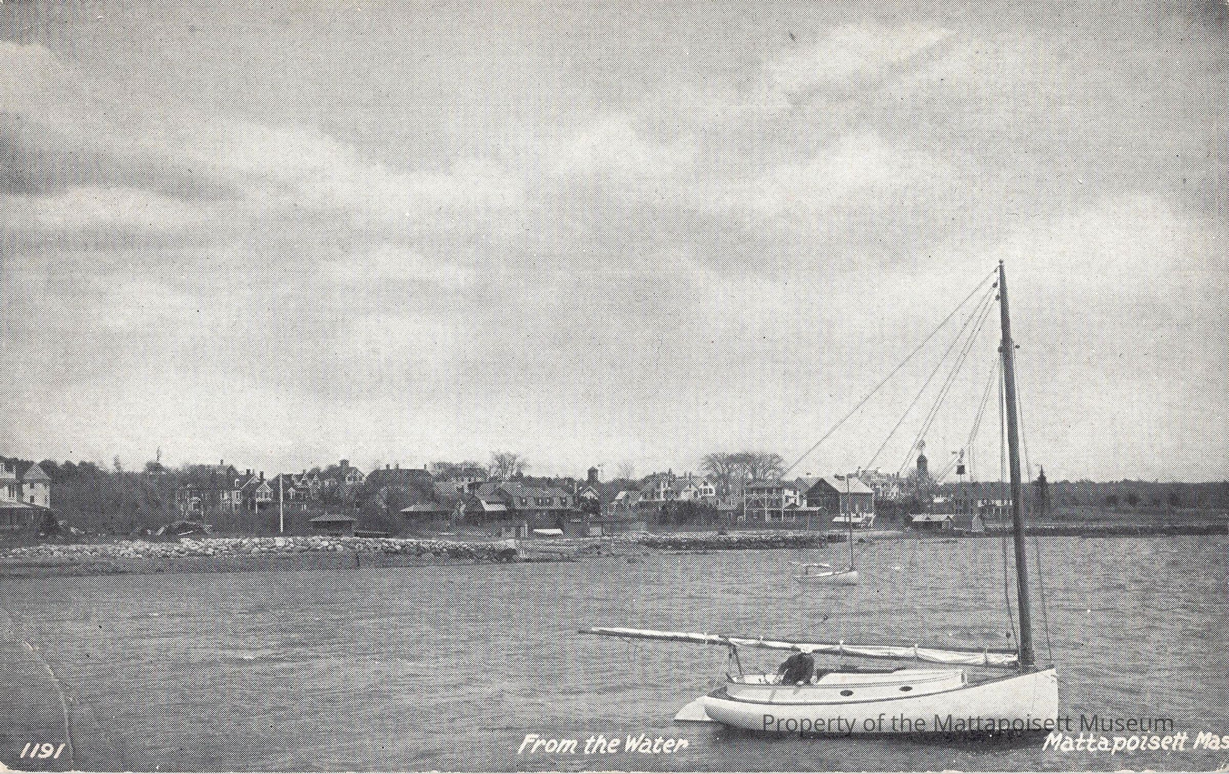 Black and white postcard showing From the Water, Mattapoisett, Mass.Collection