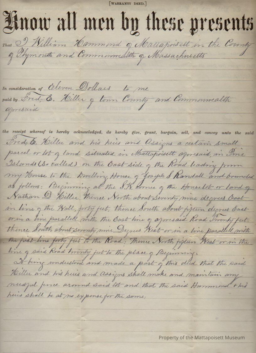 William & Jane S. Hammond to Fred E. Hiller, land in Pine Island for $1.Collection