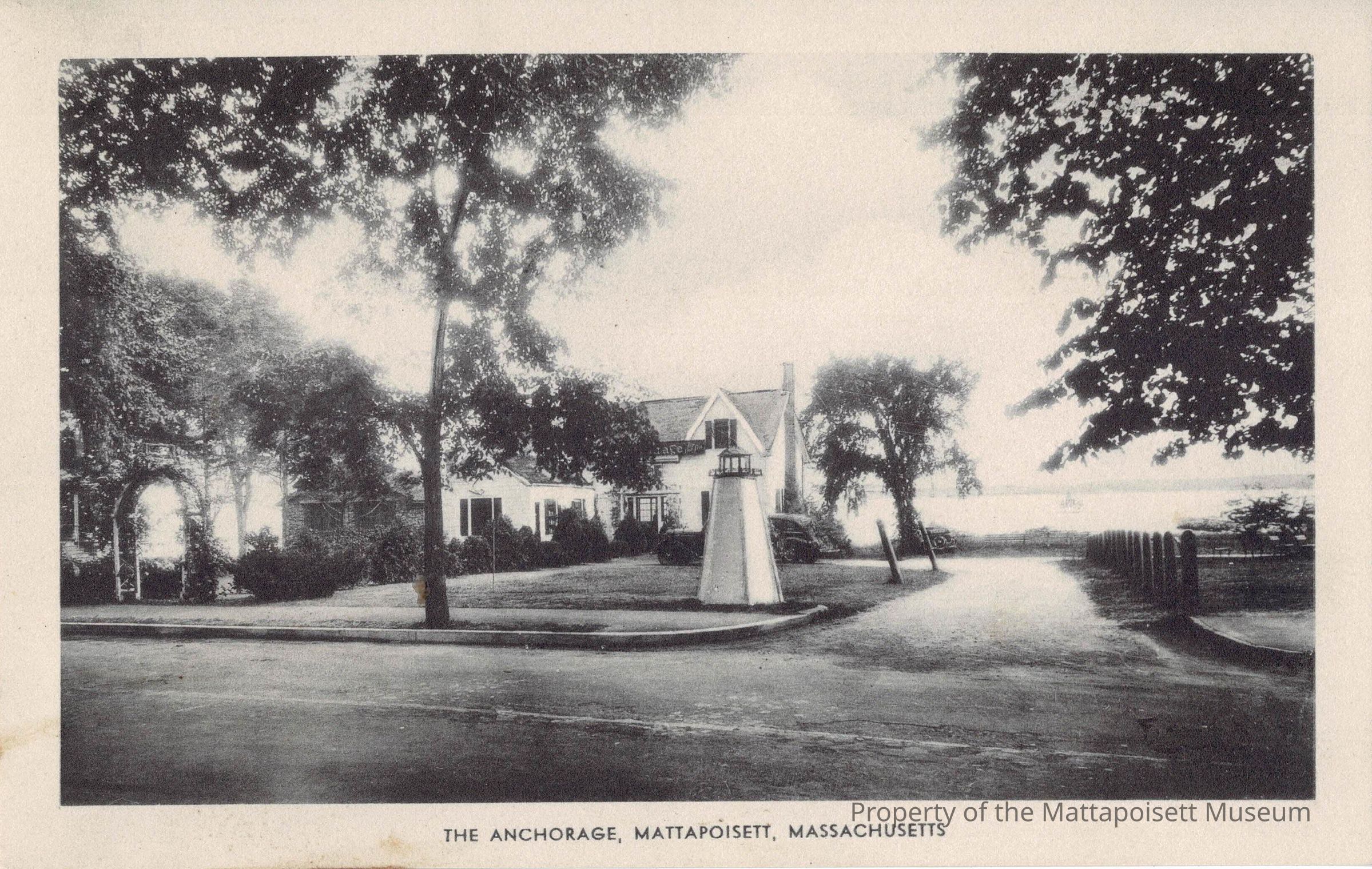 Black and white postcard showing The Anchorage, Mattapoisett, Massachusetts. Pre-address of Alice C. Ordway, North Street, Mattapoisett, Massachusetts.Collection