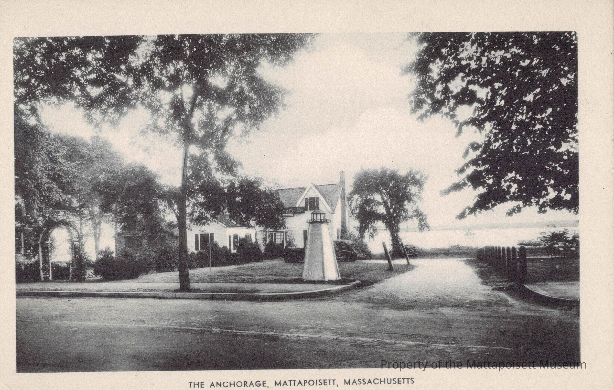 Black and white postcard showing The Anchorage, Mattapoisett, Massachusetts.Collection