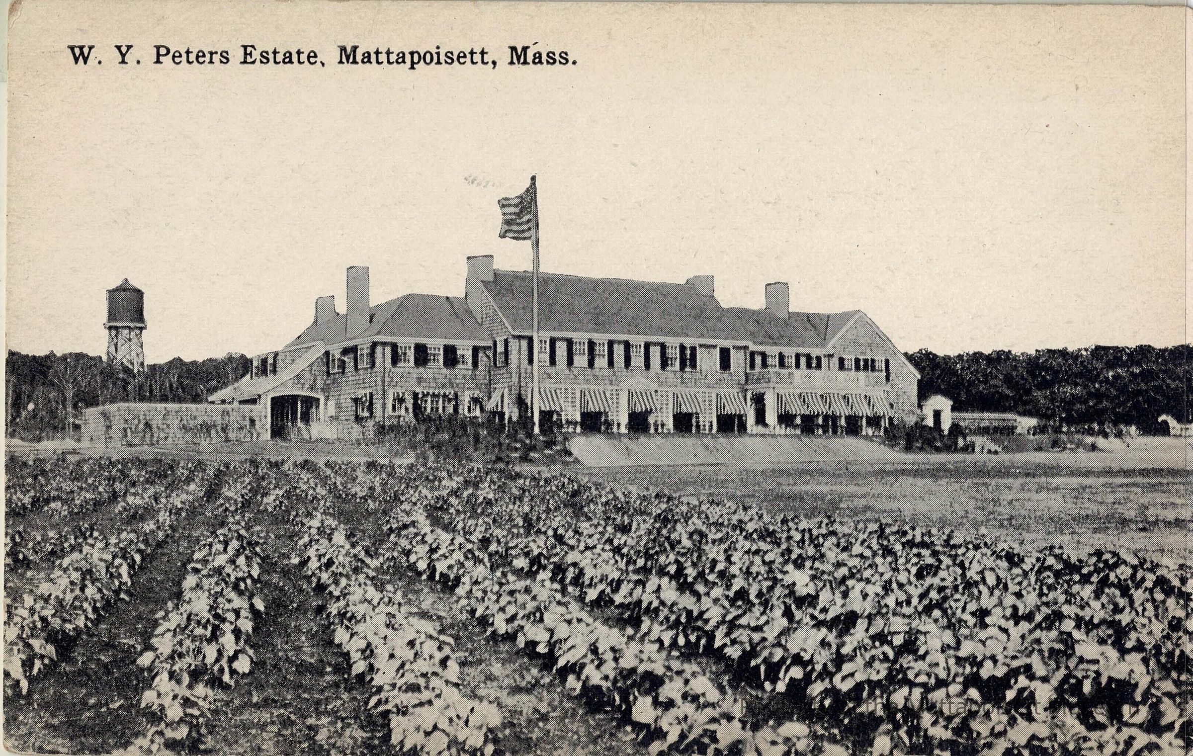 Black and white postcard showing W. Y. Peters Estate, Mattapoisett, Mass.Collection