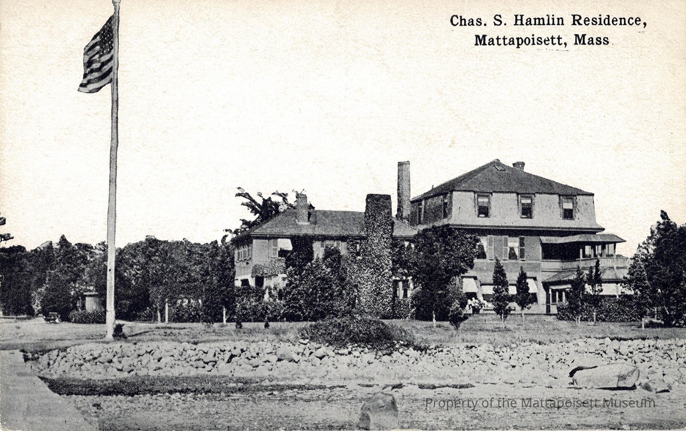 Black and white postcard showing Chas. S. Hamlin Residence, Mattapoisett, Mass.Collection