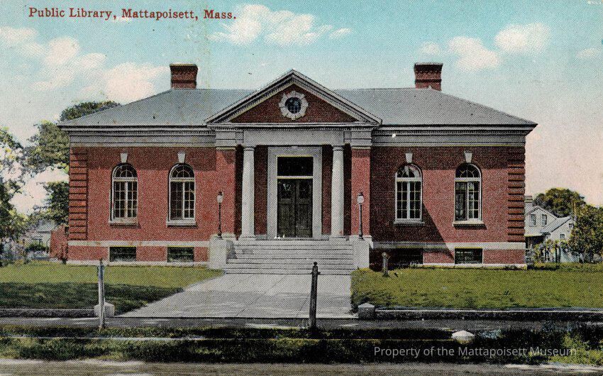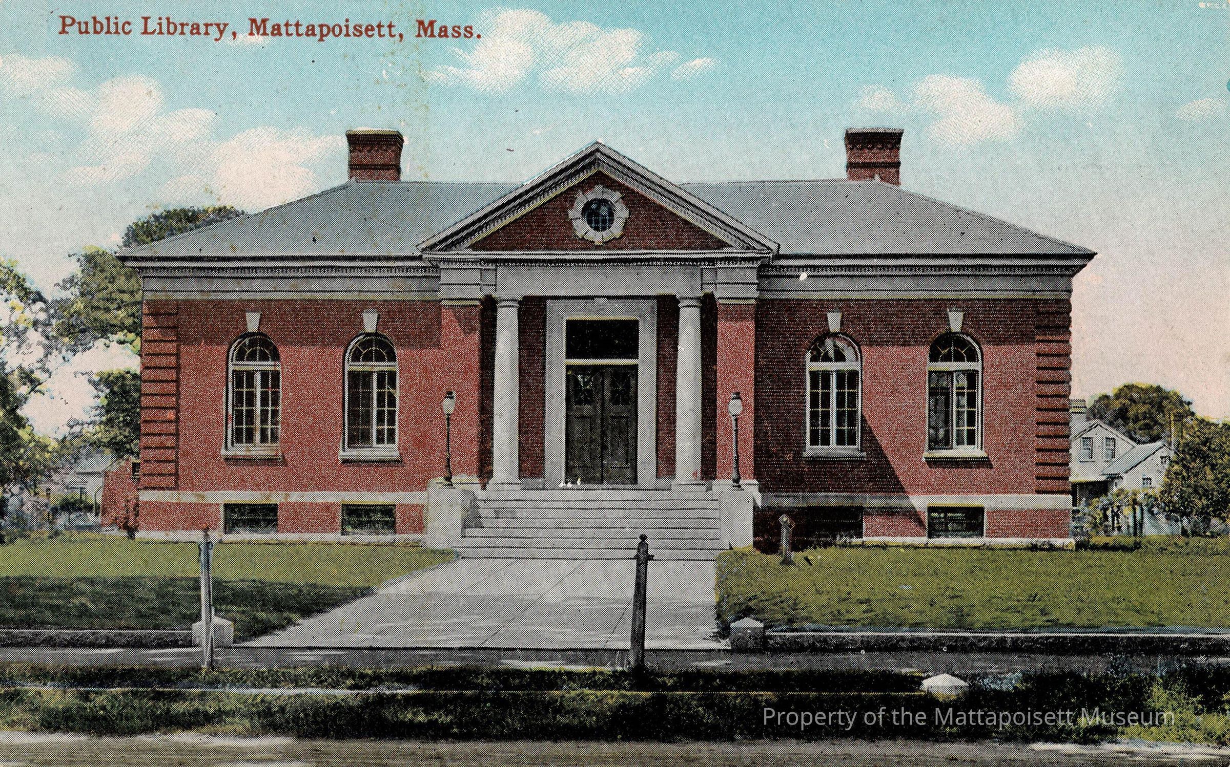 Hand-colored postcard showing Public Library, Mattapoisett, Mass.Collection