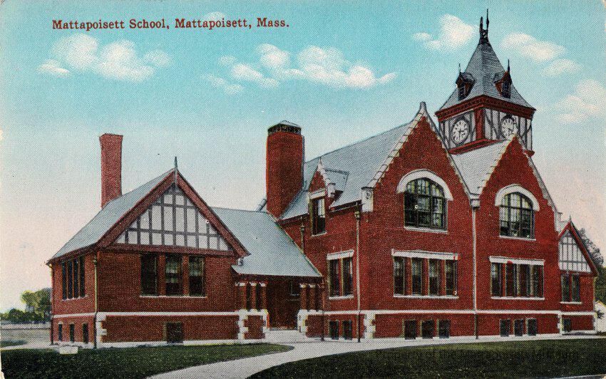 Hand-colored postcard showing Mattapoisett School, Mattapoisett, Mass.Collection