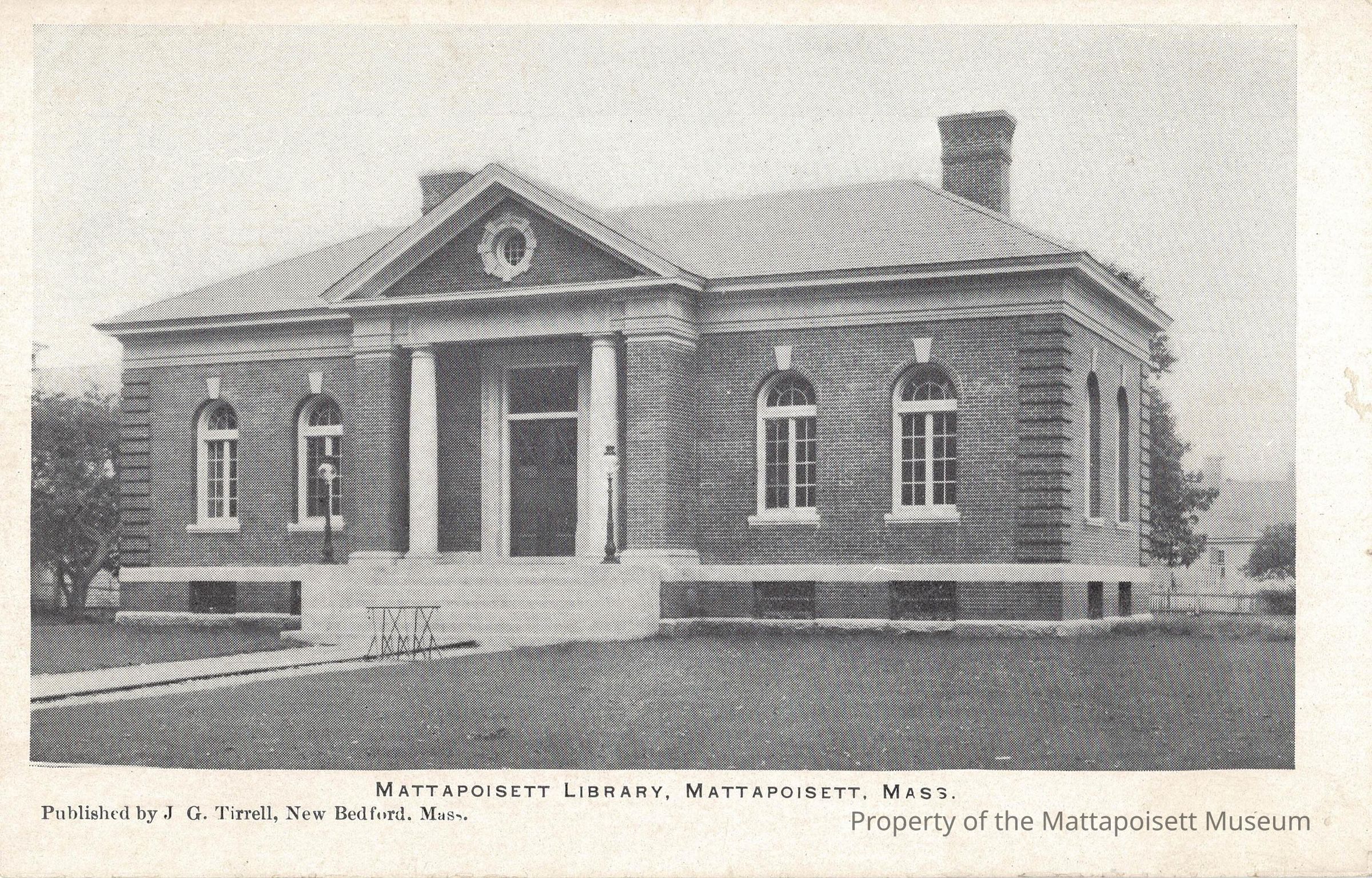 Black and white postcard showing Mattapoisett Library, Mattapoisett, Mass.Collection