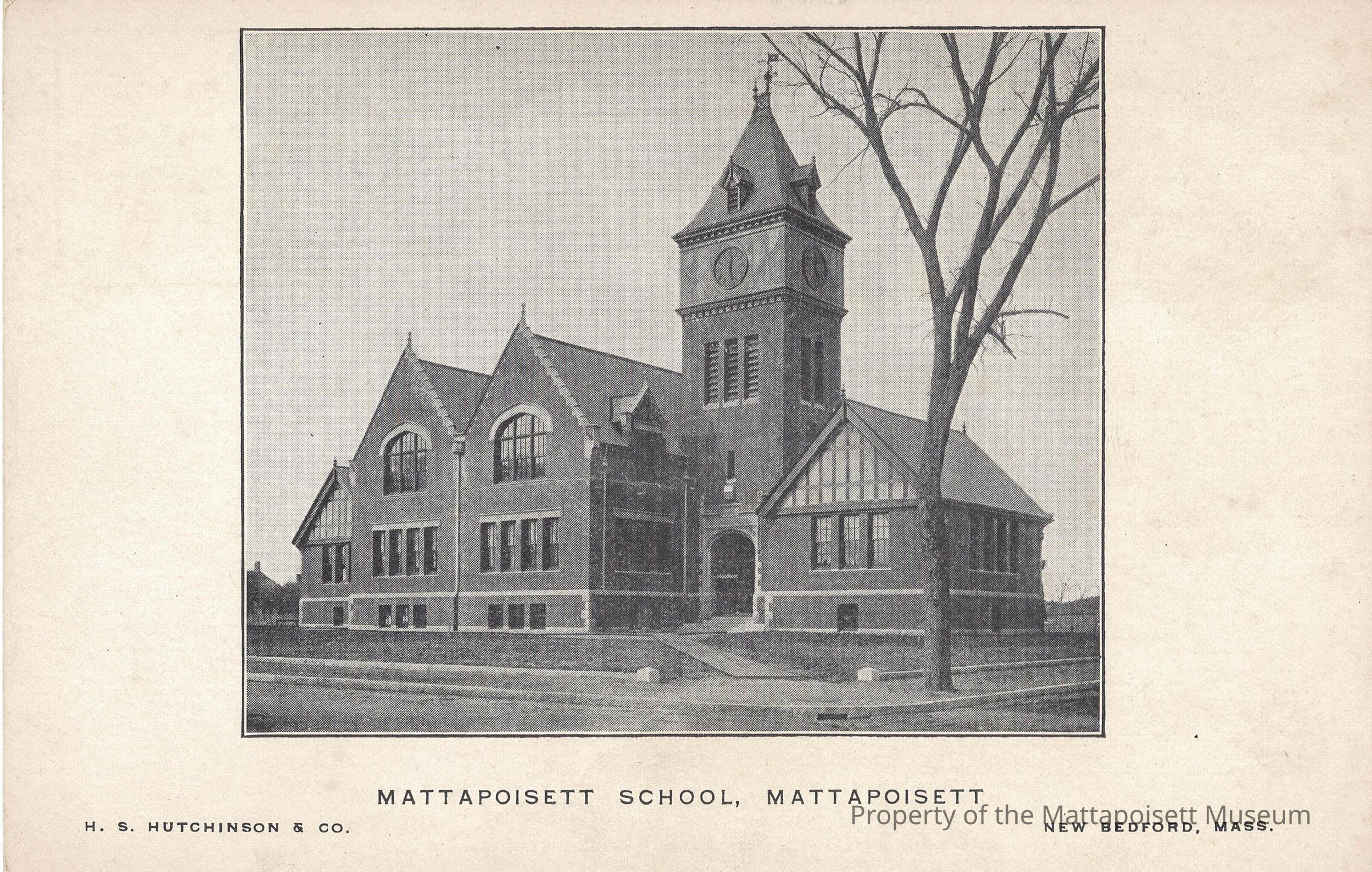 Black and white postcard showing Mattapoisett School, Mattapoisett, Mass.Collection