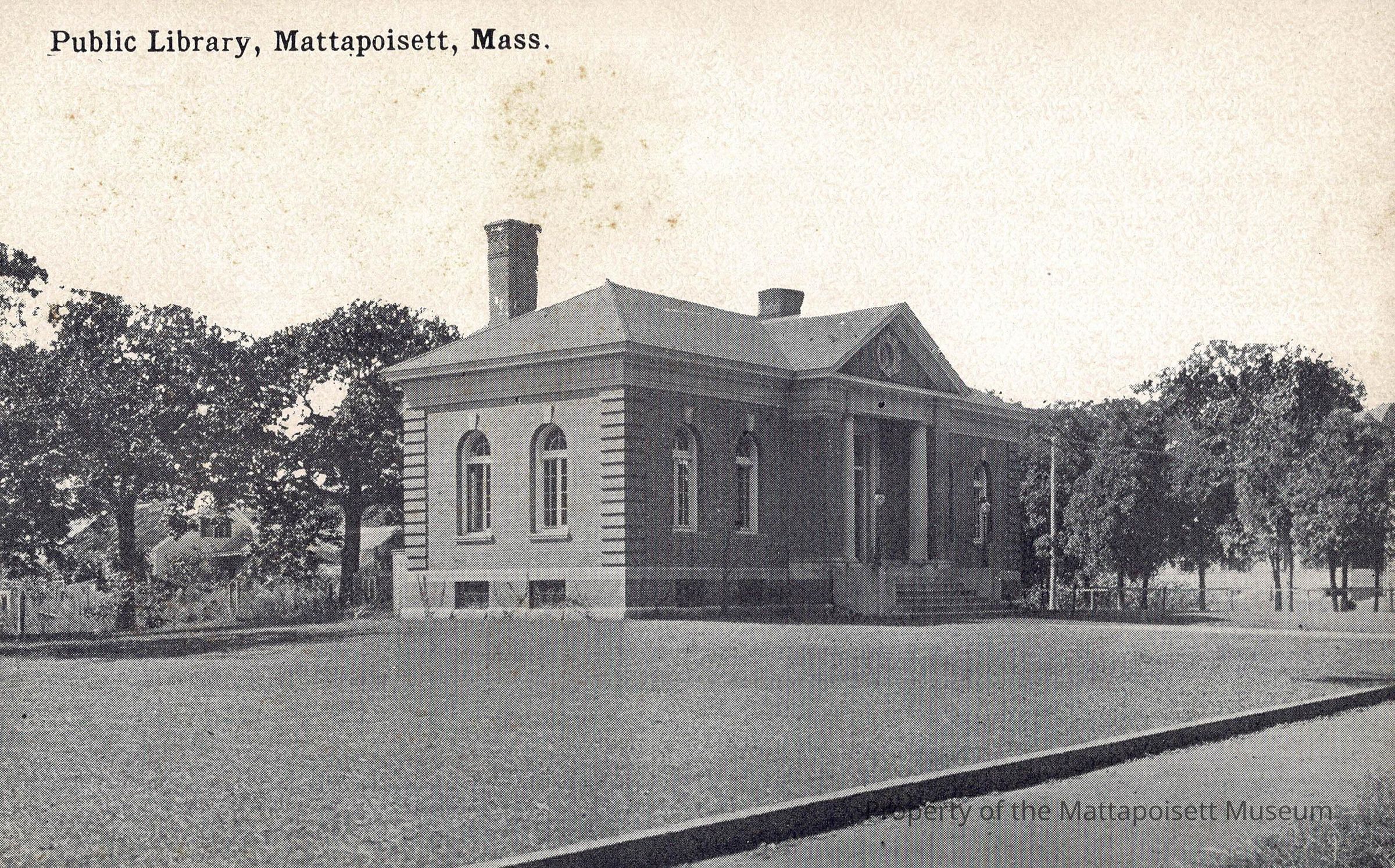 Black and white postcard showing Public Library, Mattapoisett, Mass.Collection