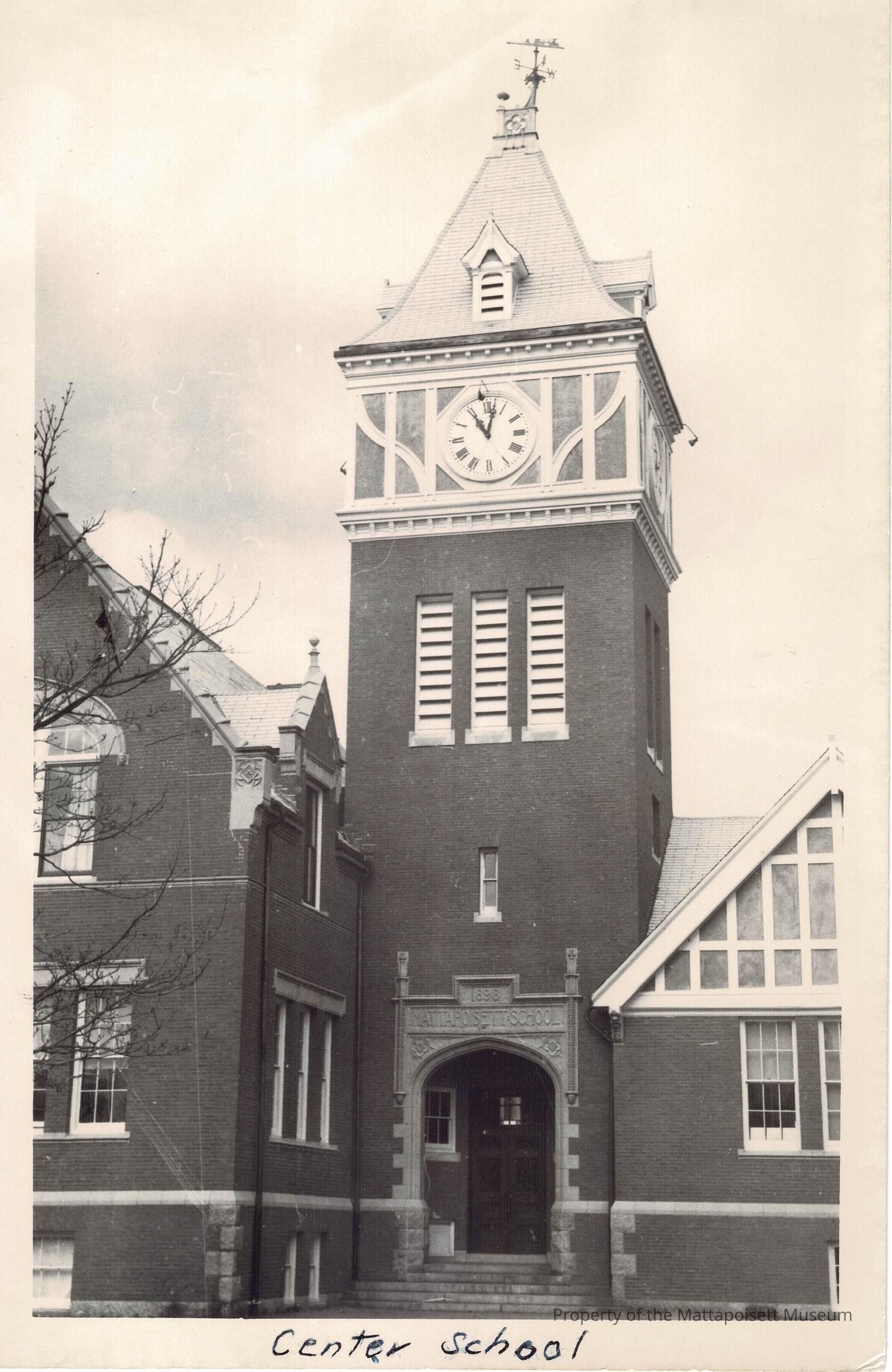 Black and white postcard showing Center School, Mattapoisett, Mass.Collection