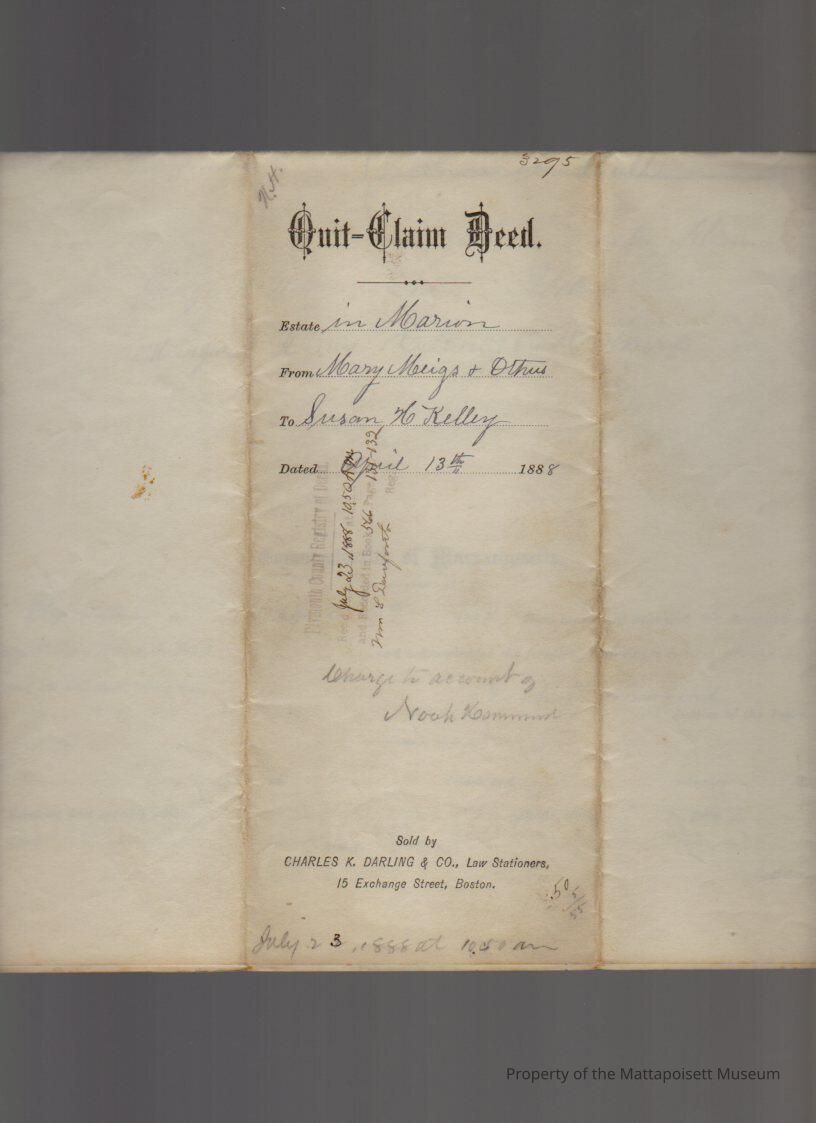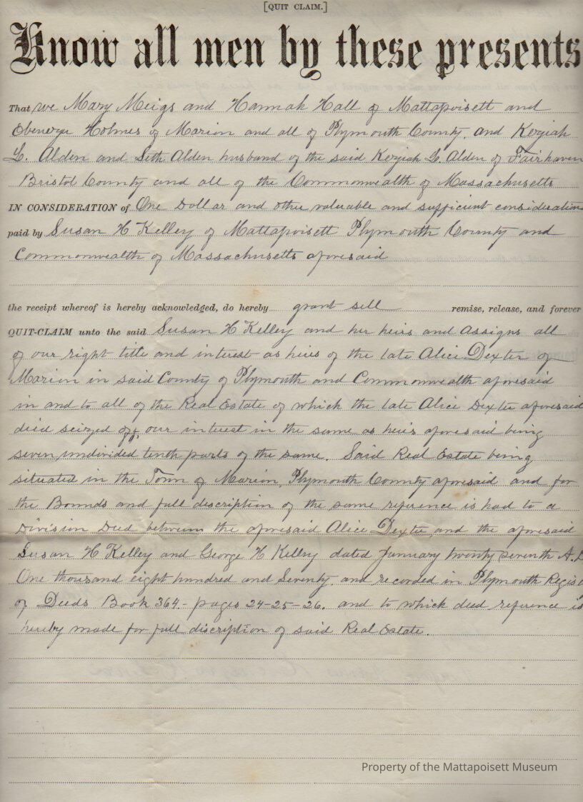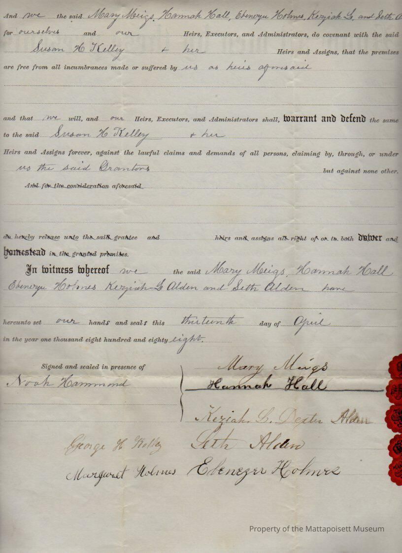 Mary Meigs & Hannah Hall, et al., to Susan H. Kelley, land for $1 and other valuable and sufficient considerations.Collection