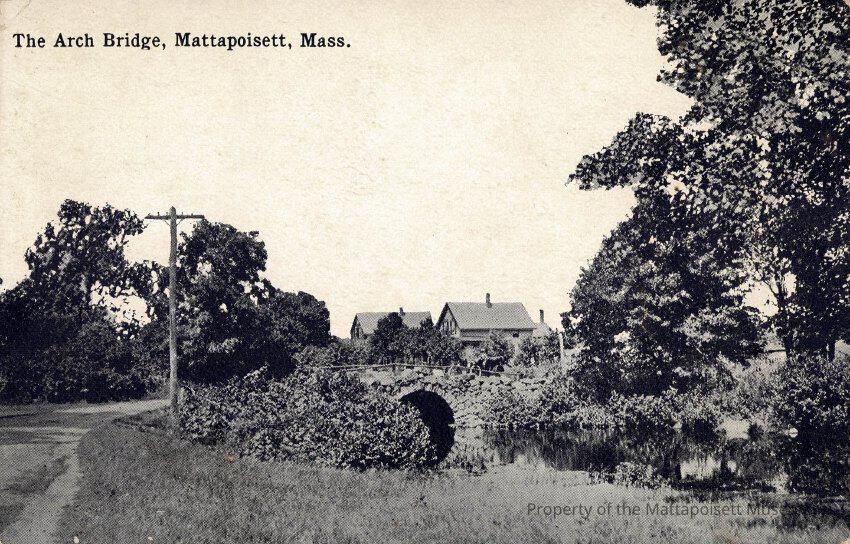 Black and white postcard showing The Arch Bridge, Mattapoisett, Mass.Collection