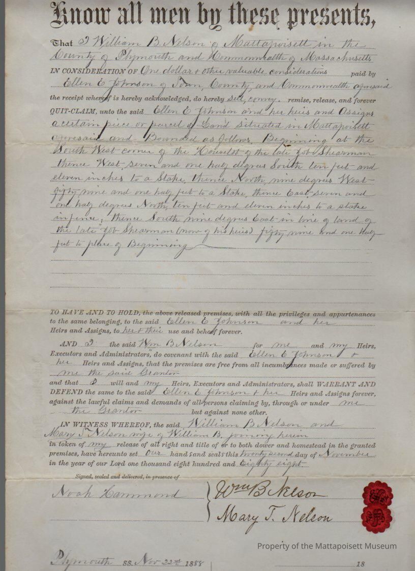 William B. & Mary R. Nelson to Ellen E. Johnson, land for $1 and other valuable considerations.Collection