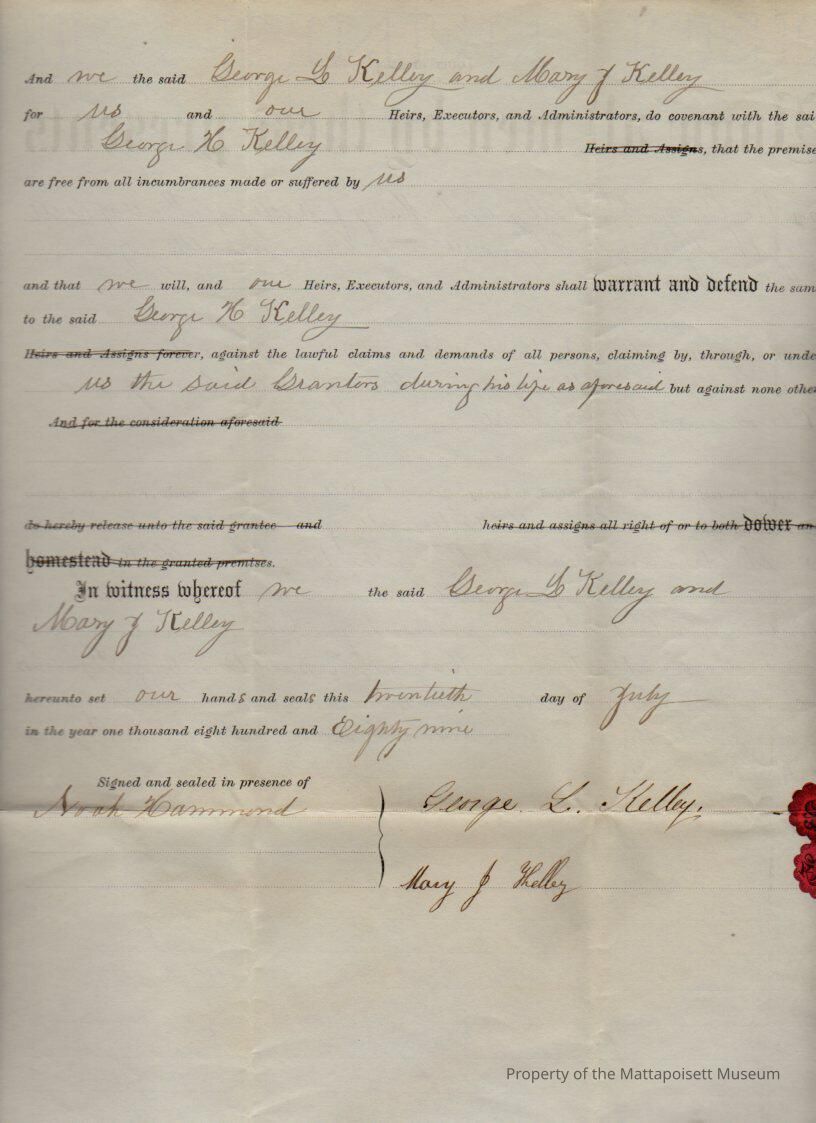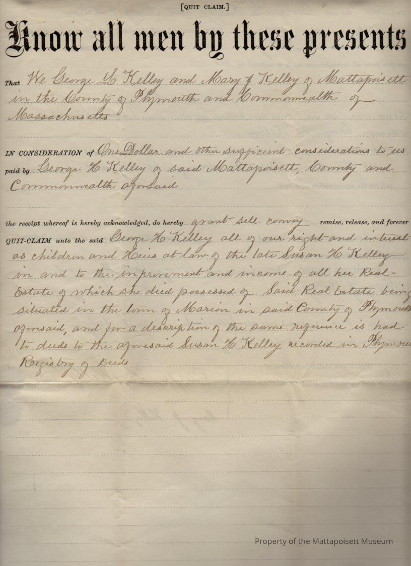 George L. & Mary Kelley to George H. Kelley, land in Marion for $1 and other sufficient considerations.Collection