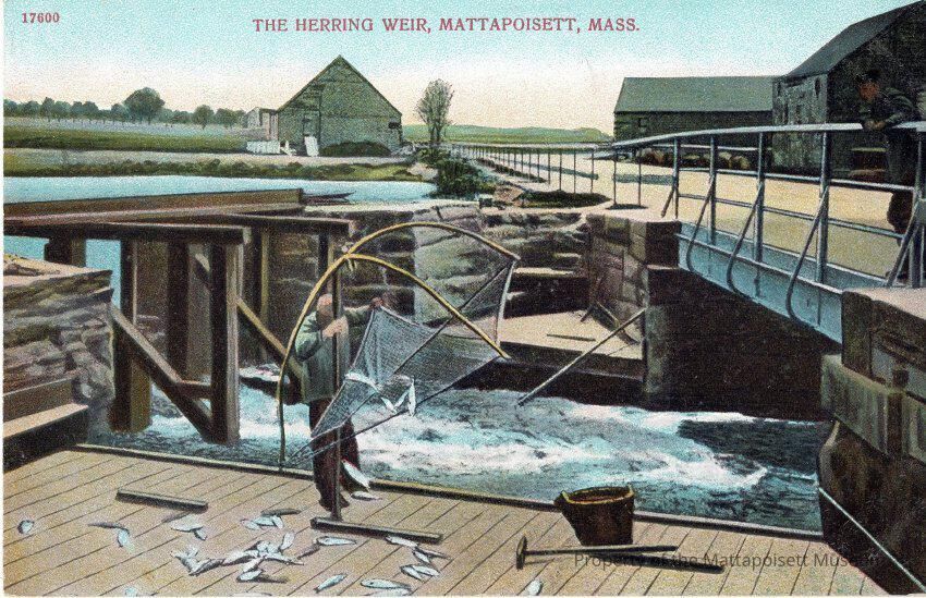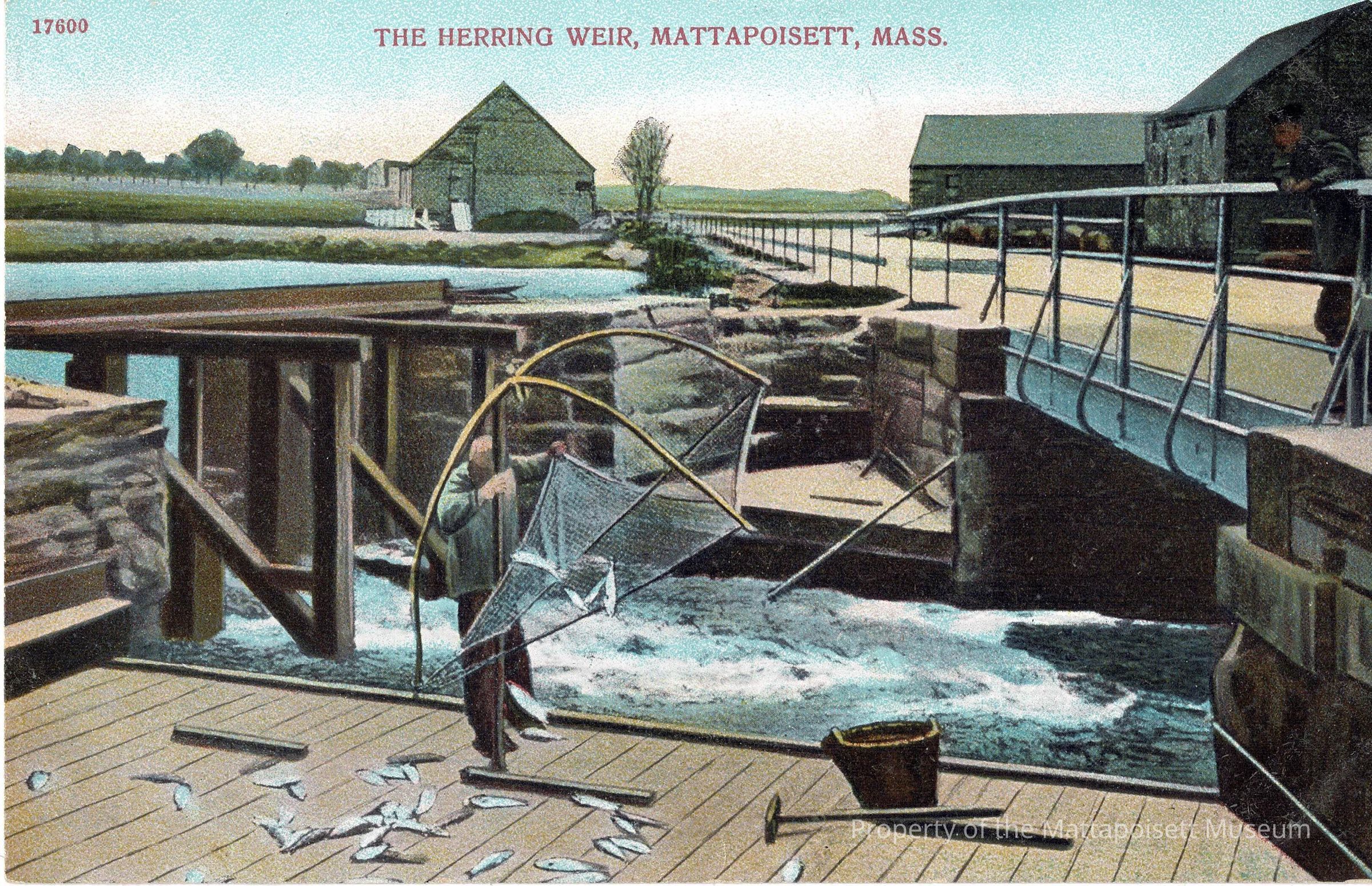 Hand-colored postcard showing The Herring Weir, Mattapoisett, Mass.Collection