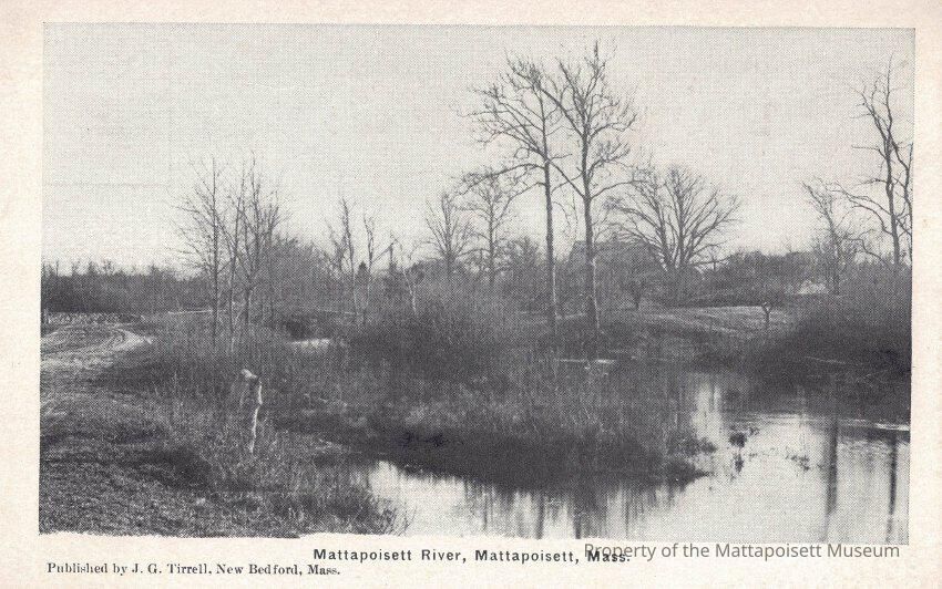 Black and white postcard showing Mattapoisett River, Mattapoisett, Mass.Collection