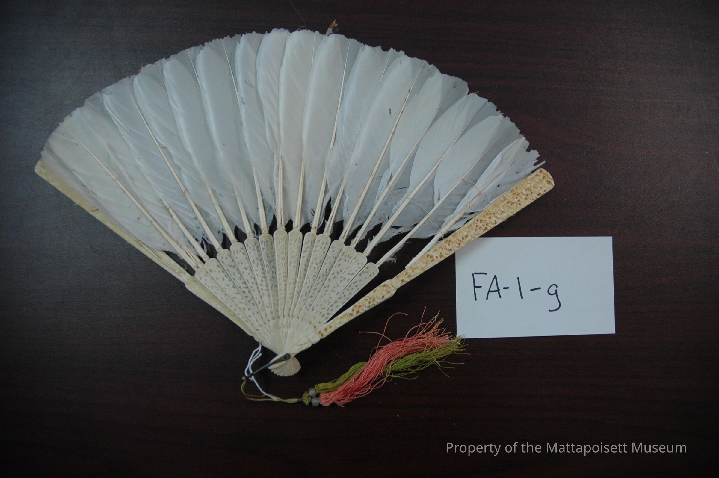Carved ivory feather fan brought from Hong Kong.Collection