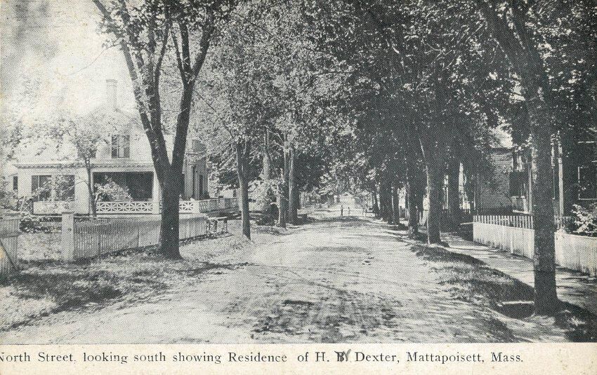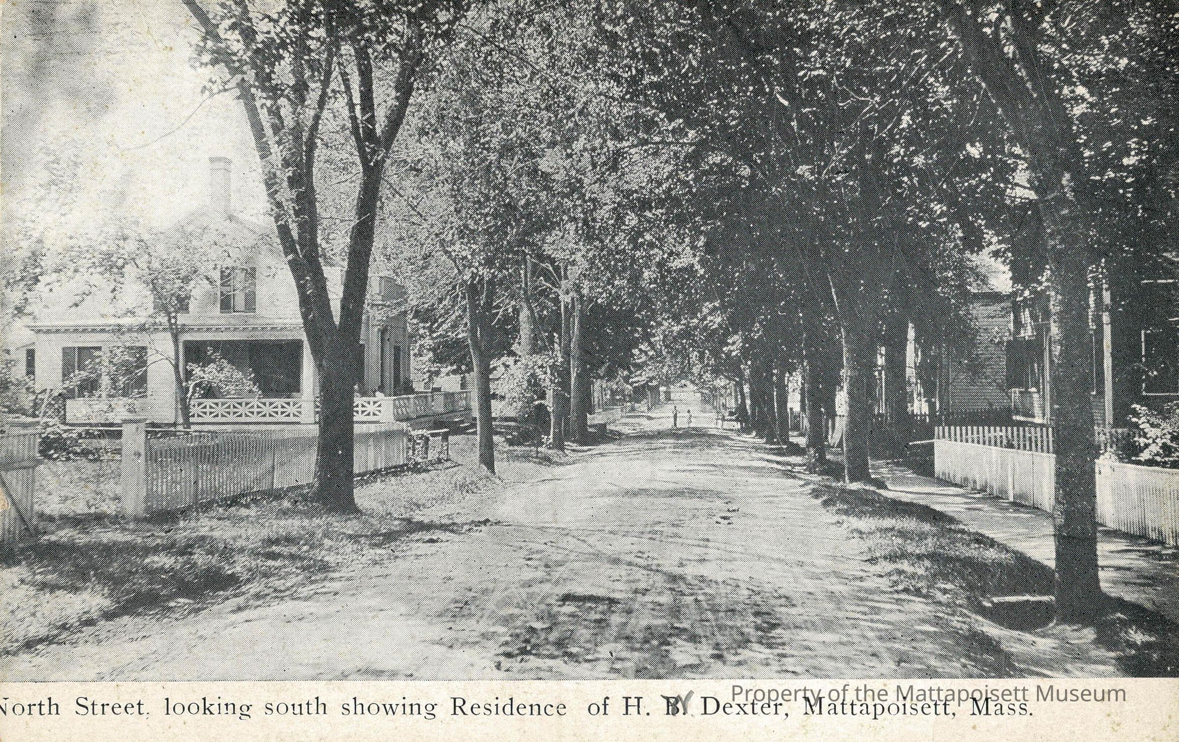 Black and white postcard showing North Street looking south showing Residence of H.W. Dexter, Mattapoisett, Mass.Collection