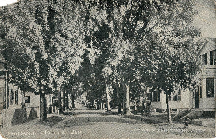 Black and white postcard showing Pearl Street, Mattapoisett, Mass.Collection