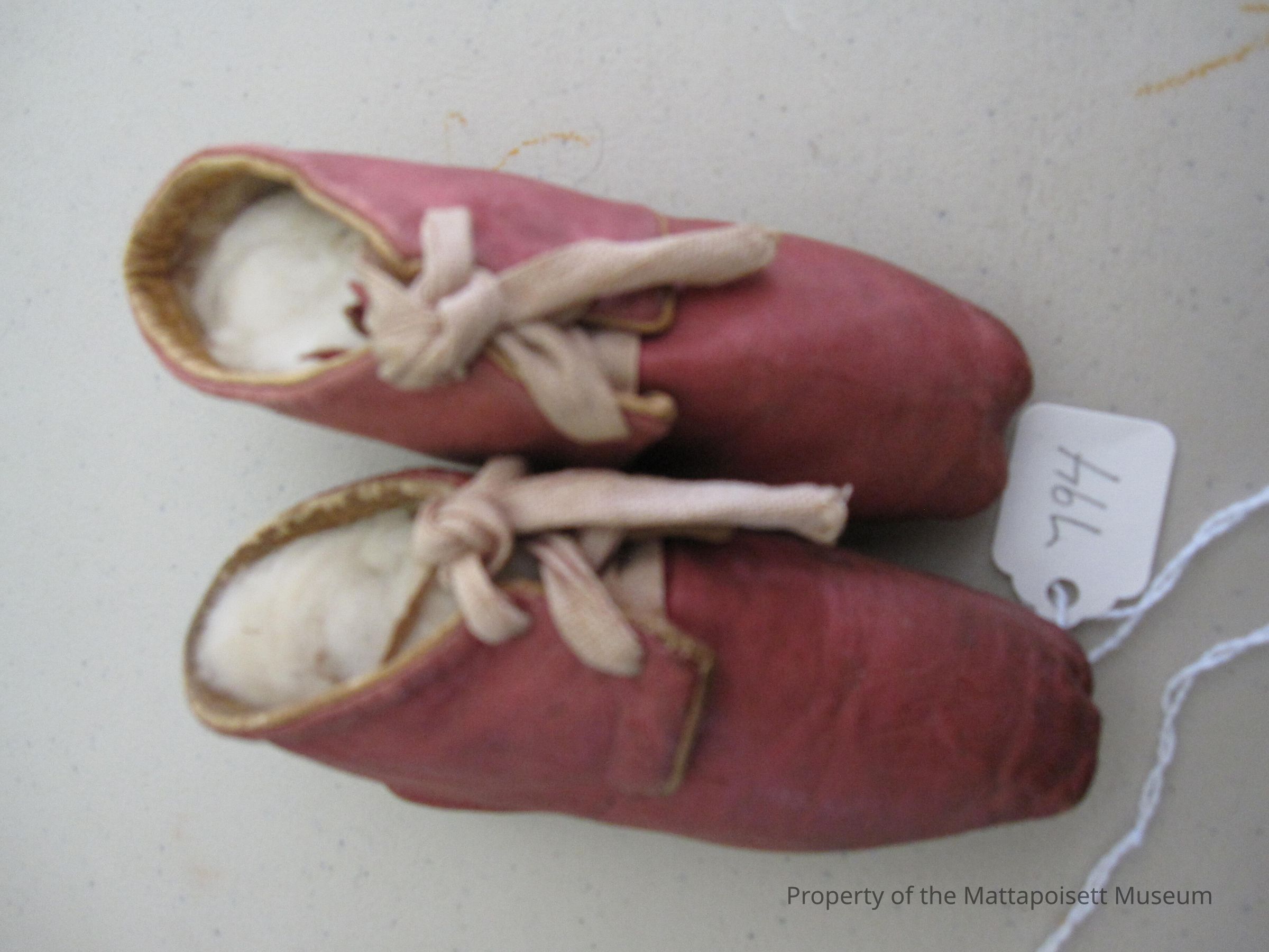 Notes: Notecard: Baby soft red/rose shoes with leather laces.