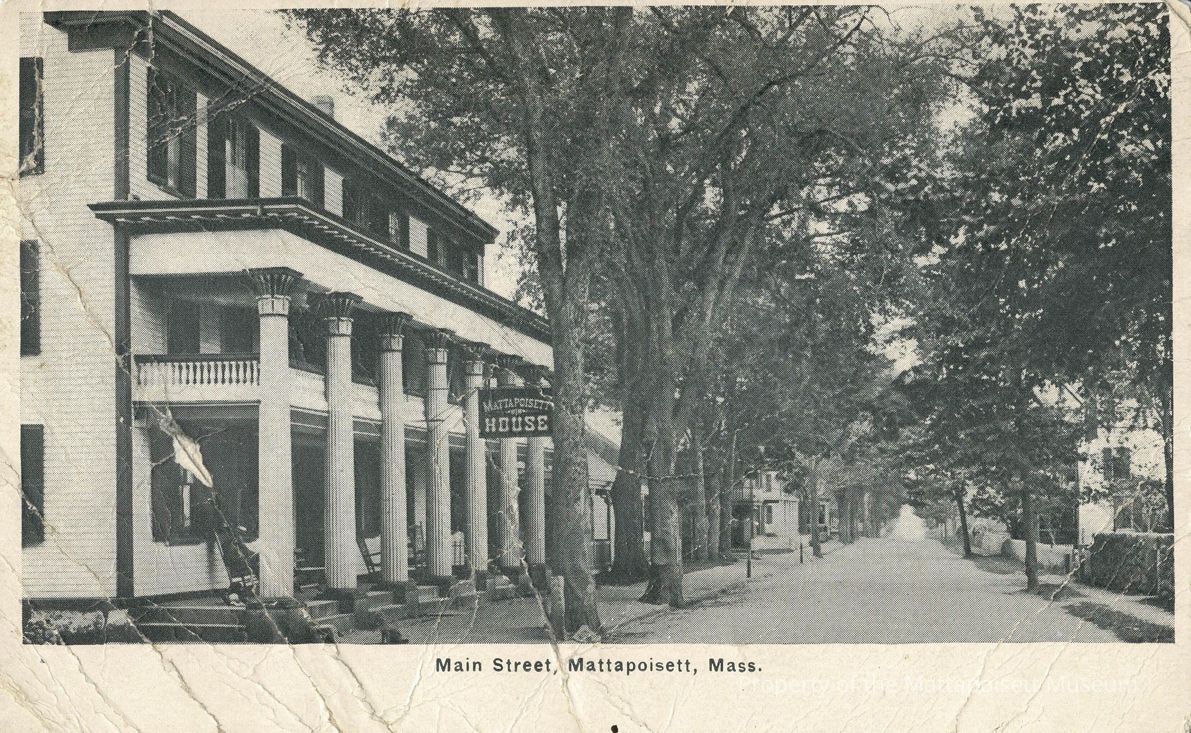Black and white postcard showing Main Street, Mattapoisett, Mass.Collection