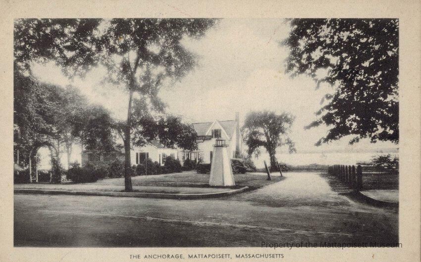 Black and white postcard showing The Anchorage, Mattapoisett, Massachusetts.Collection