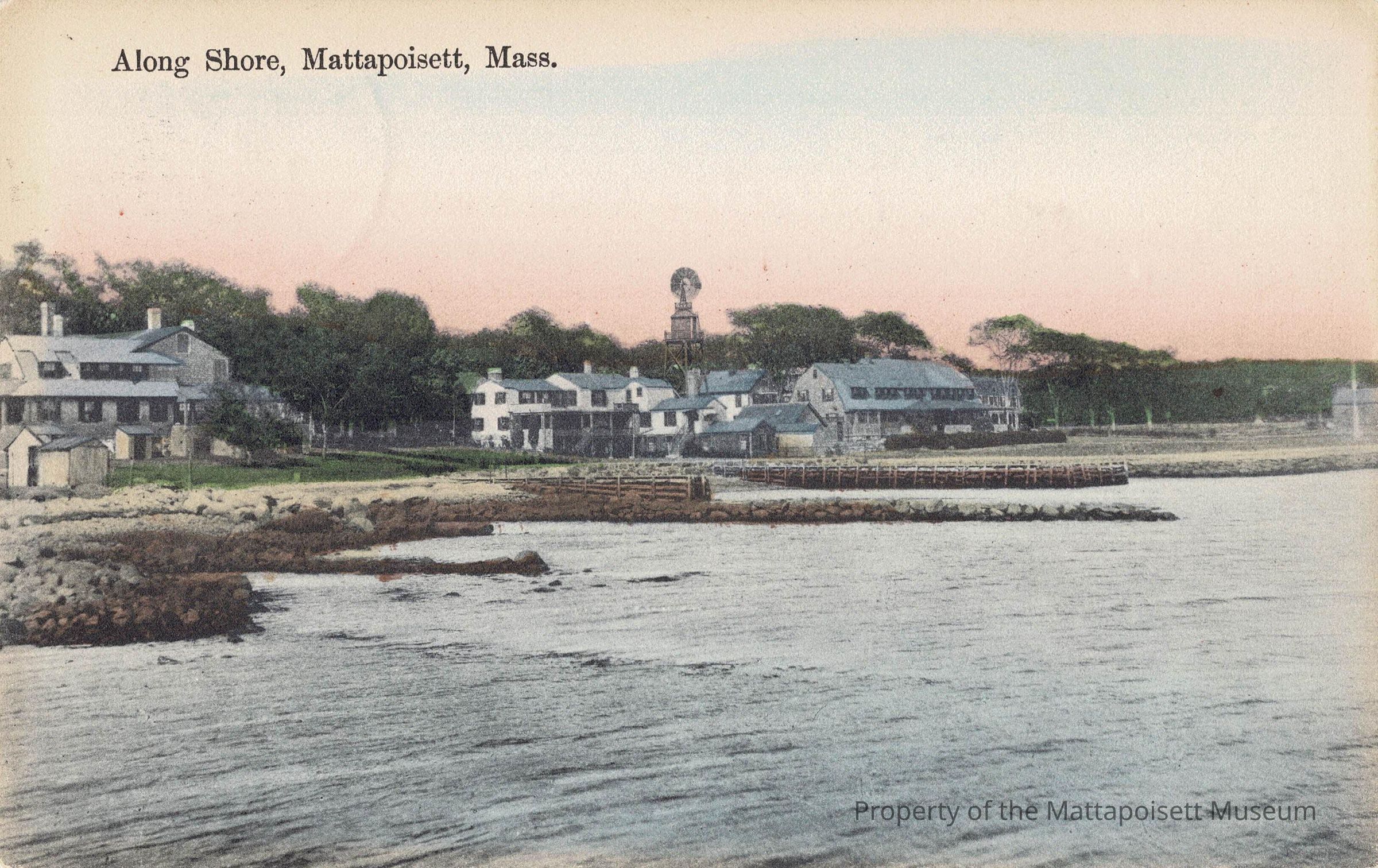 Hand-colored postcard showing Along Shore, Mattapoisett, Mass. Hand-written note to Miss Tilden, Town from M.H. Munro, dated Nov.2. Postmark date not legible, Mattapoisett, Mass.Collection
