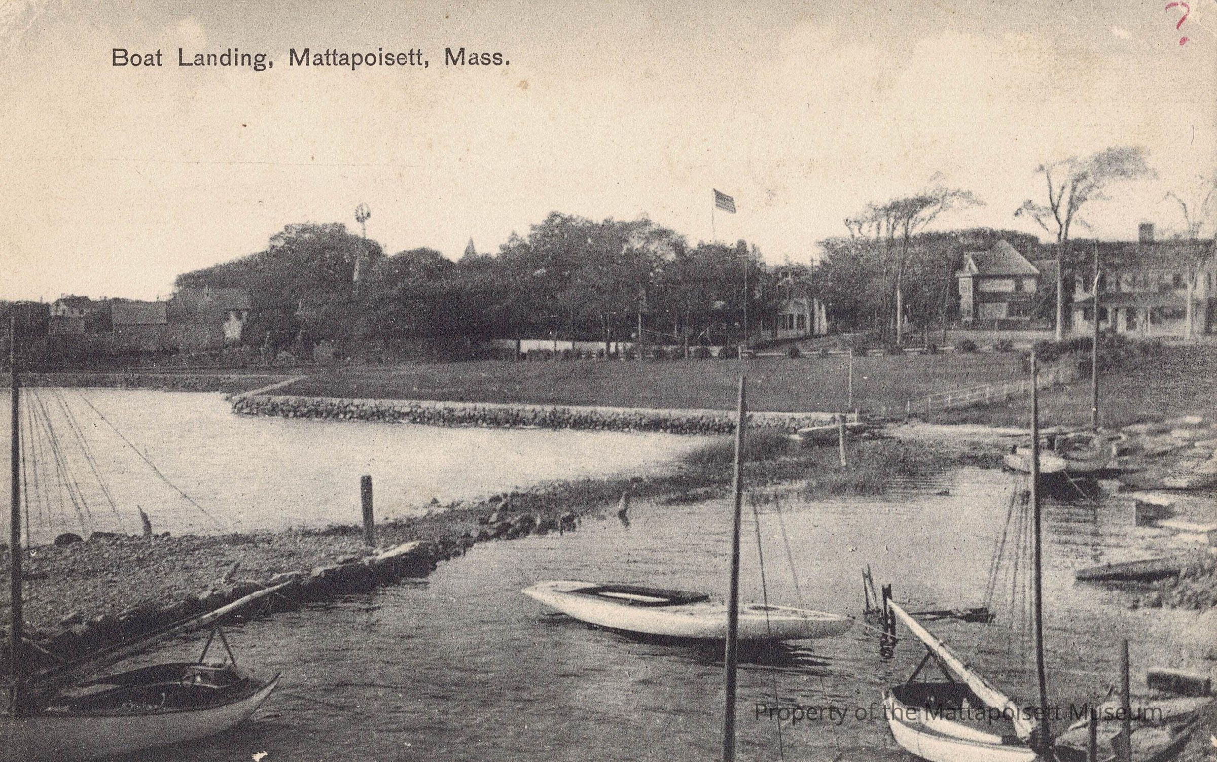 Black and white postcard showing Boat Landing, Mattapoisett, Mass.Collection