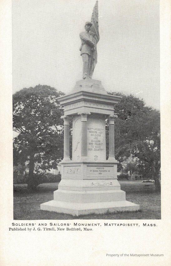 Black and white postcard showing Soldiers' and Sailors' Monument, Mattapoisett, Mass.Collection