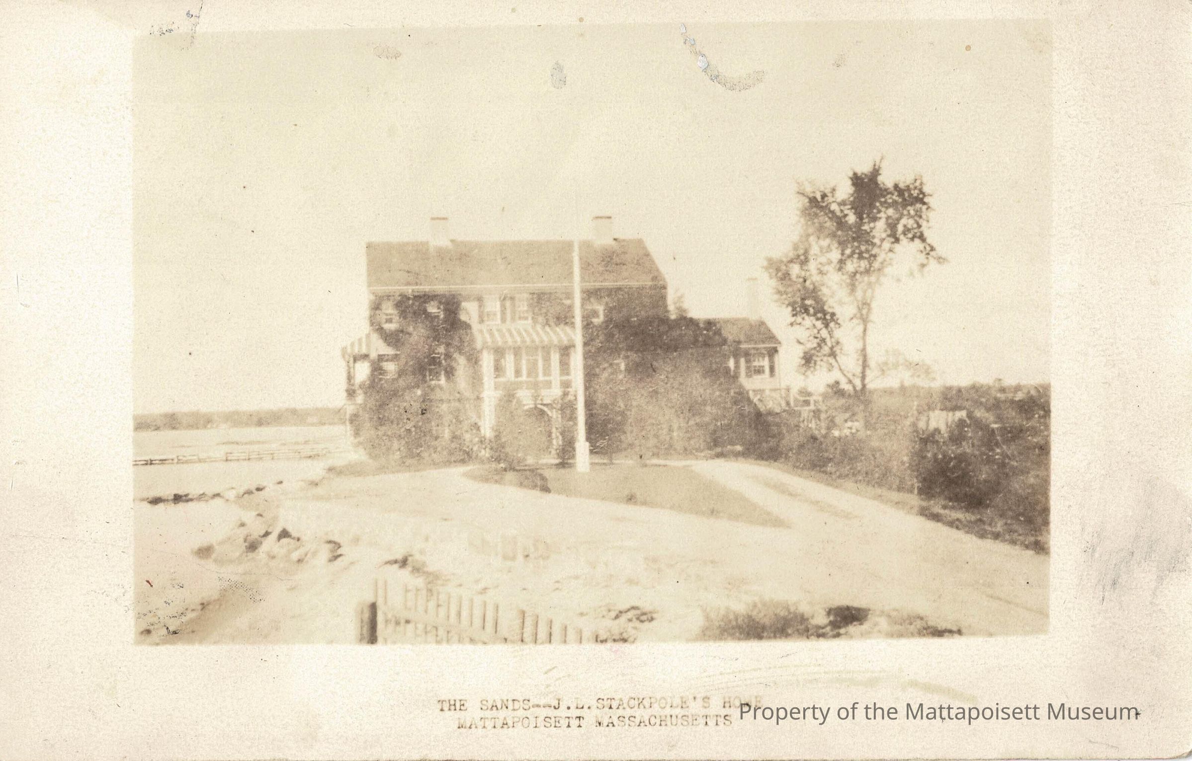 Black and white postcard showing The Sands J.D. Stackpole's Home, Mattapoisett, Mass.Collection