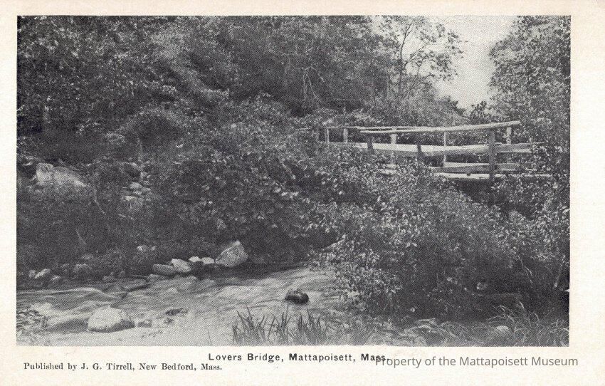 Black and white postcard showing Lovers Bridge, Mattapoisett, Mass.Collection