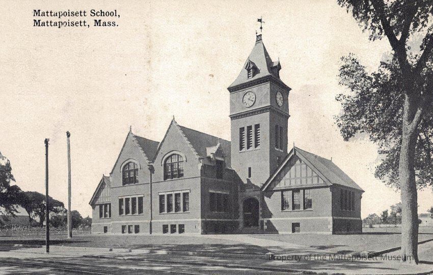 Black and white postcard showing Mattapoisett School, Mattapoisett, Mass.Collection