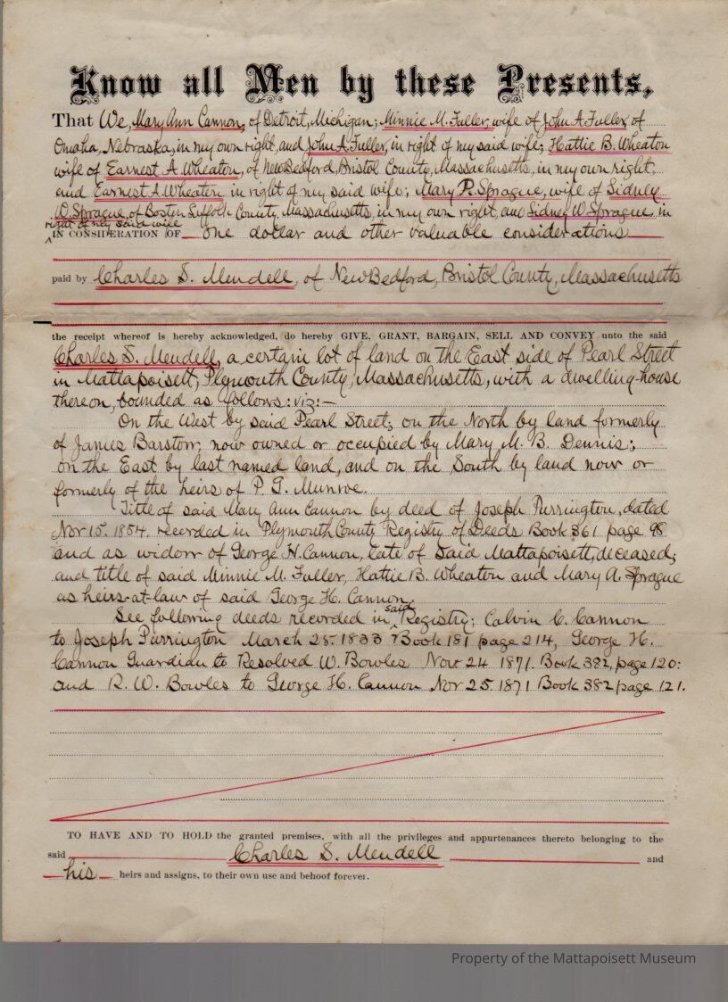 Mary Ann Cannon of Michigan to Charles S. Mendell, land and dwelling house in Pine Island for $1 and other valuable considerations.Collection