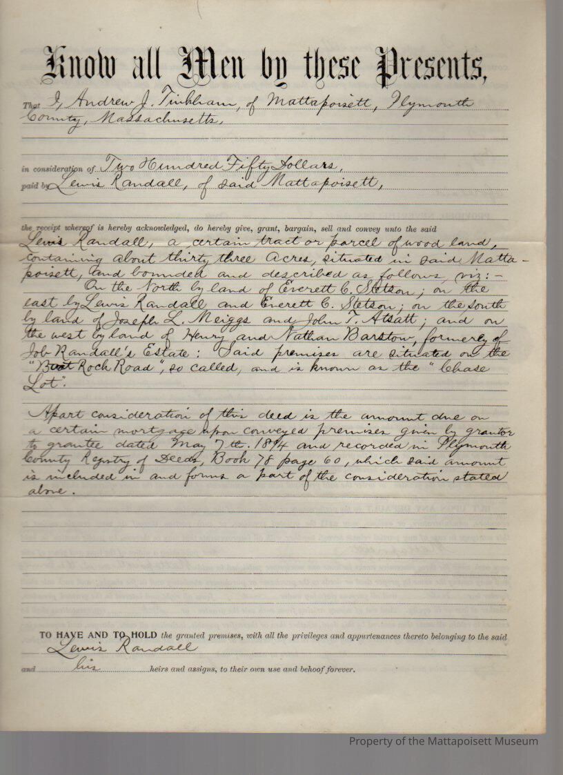 Andrew J. Tinkham to Lewis Randall, 33 acres woodland for $250.Collection