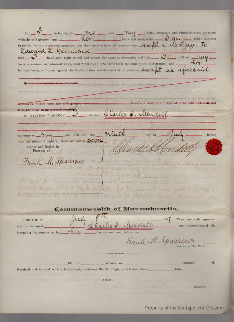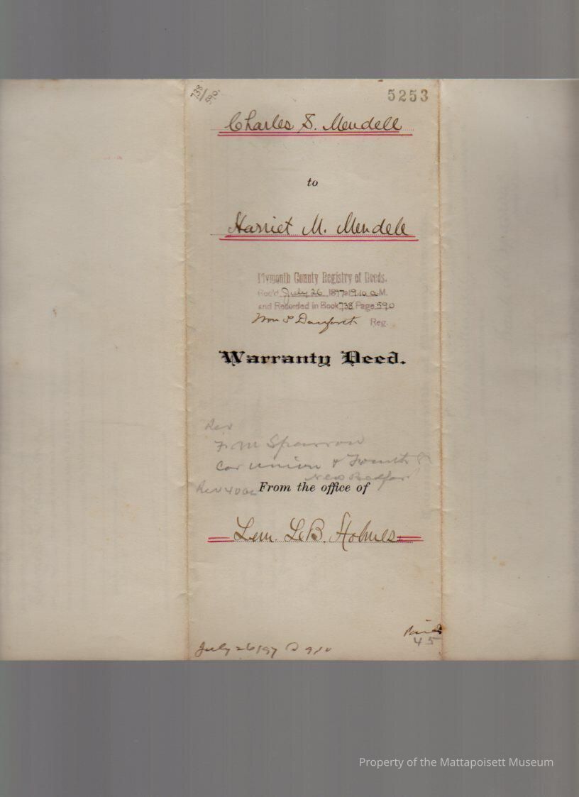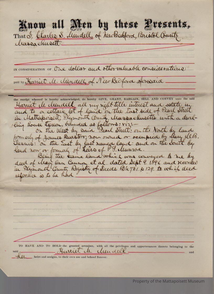 Charles S. Mendell to Harriet M. Mendell, land east of Pearl Street for $1 and other valuable considerations.Collection