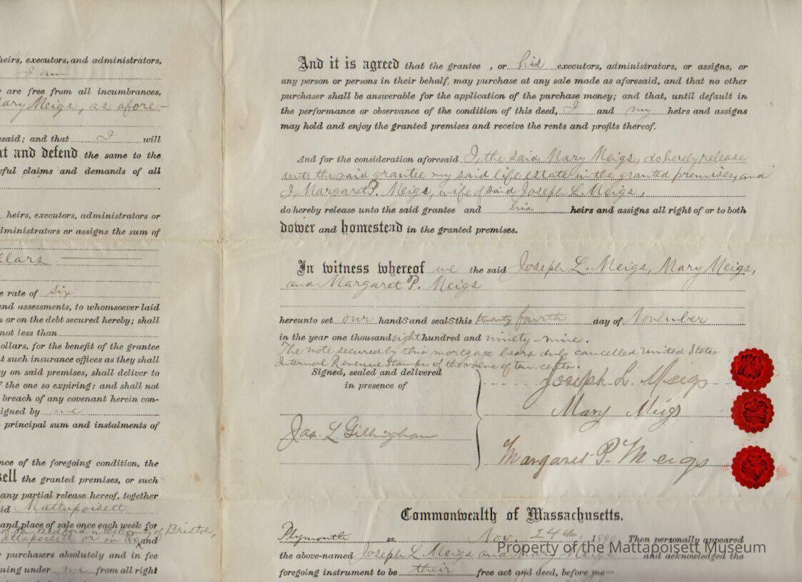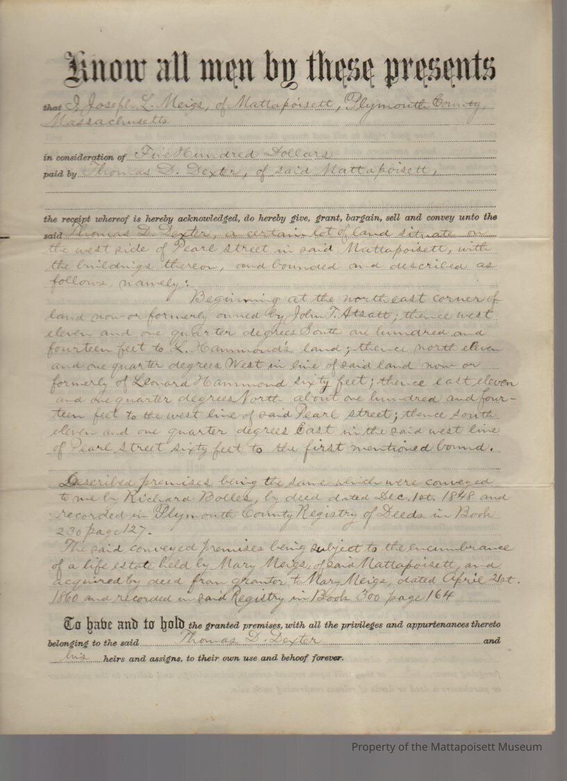 Joseph L. Meigs, Mary Meigs & Margaret Meigs to Thomas D. Dexter, land west of Pearl Street for $500.Collection